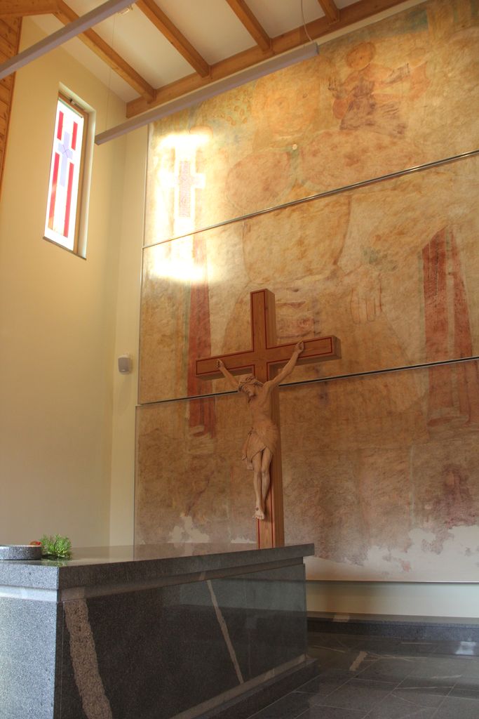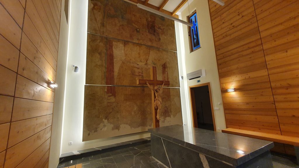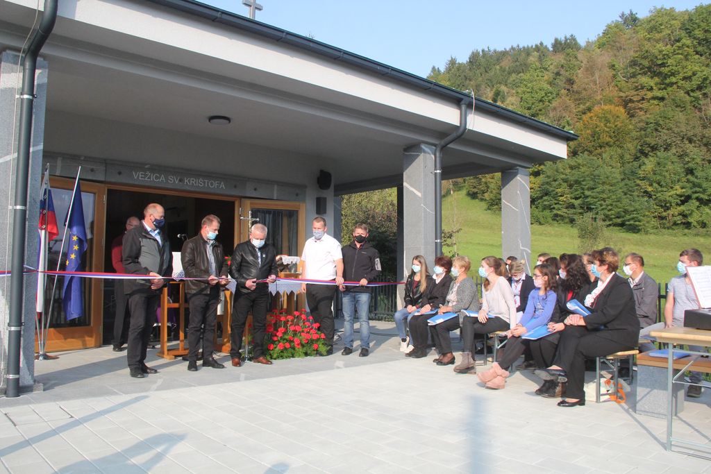Večnamenski objekt, ki sedaj stoji na robu vasi, je tudi kraj, od koder se bomo še zadnjič poslovili od naših dragih. Lepa, unikatna stavba, ki jo je zasnoval arhitekt Andrej Briški, v notranjosti skriva edinstveno podobo. Originalno fresko svetega Krištofa iz 16. stoletja. Ta mu je zaradi svoje višine tudi dala takšen izgled, saj so morali višino in širino strehe prilagoditi tej dragocenosti. Originalna freska je bila namreč zaradi vidnega propadanja in škodljivih vplivov okolja leta 2001 sneta z južne zunanje stene prezbiterija cerkve in restavrirana ter shranjena v restavratorskem centru v Ljubljani. Leta 2003 so na to mesto naslikali kopijo, original pa je čakal, shranjen v Ljubljani vse do 3. decembra 2019, ko so jo vgradili v notranjost poslovilne vežice. Tudi zato je vežica dobila ime po svetem Krištofu, zavetniku popotnikov in enem izmed 14 zavetnikov v sili, ki goduje 24. julija.