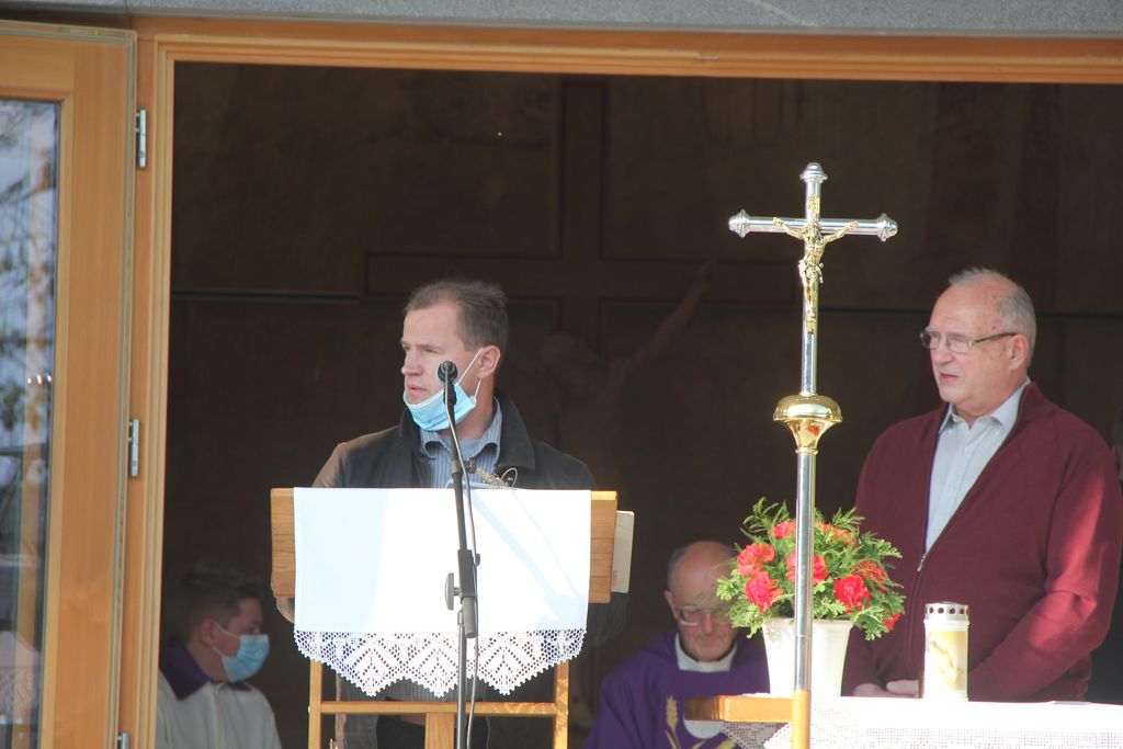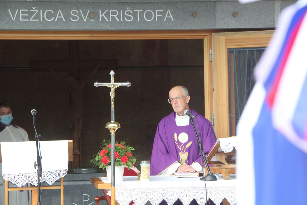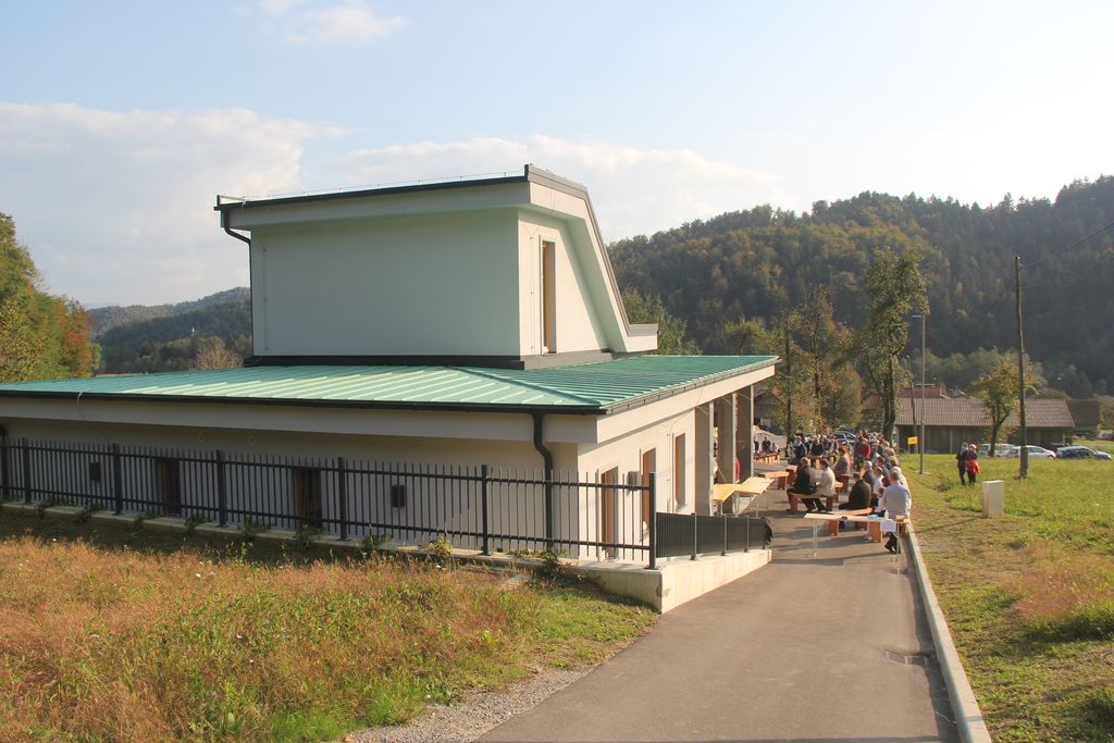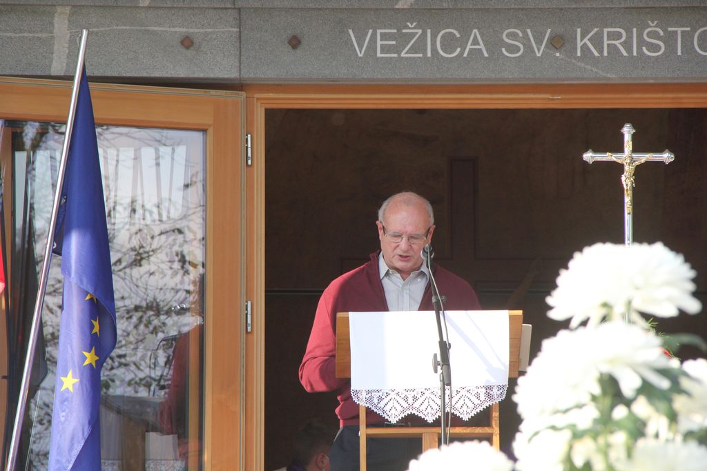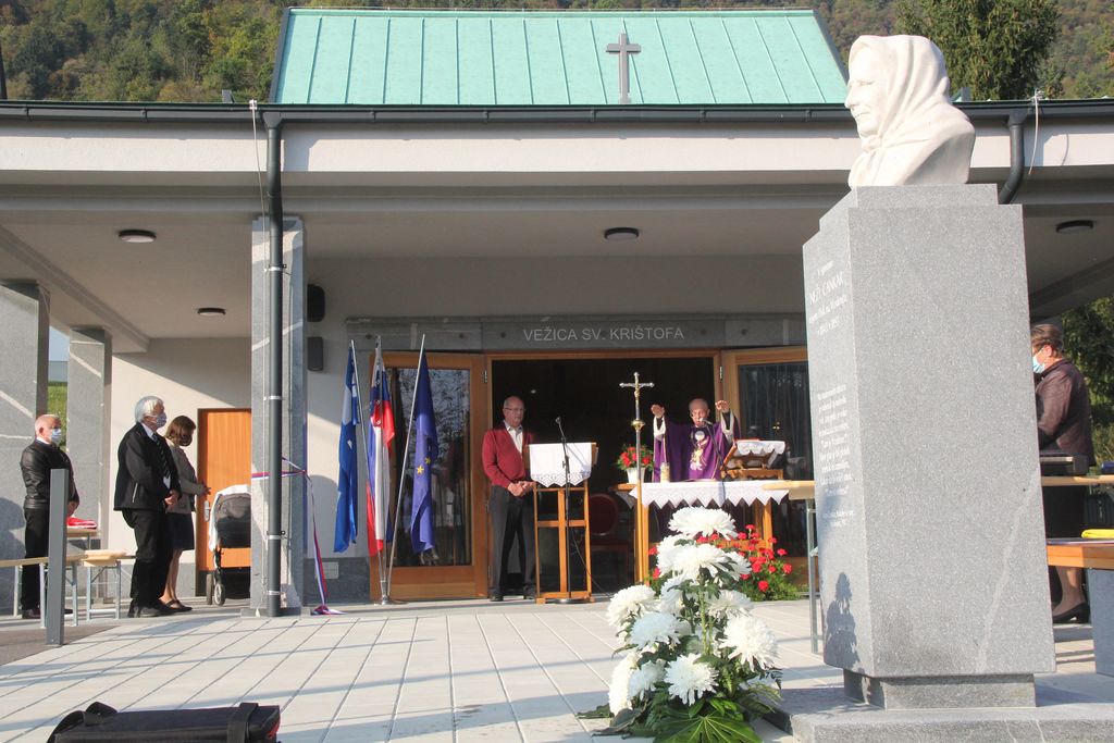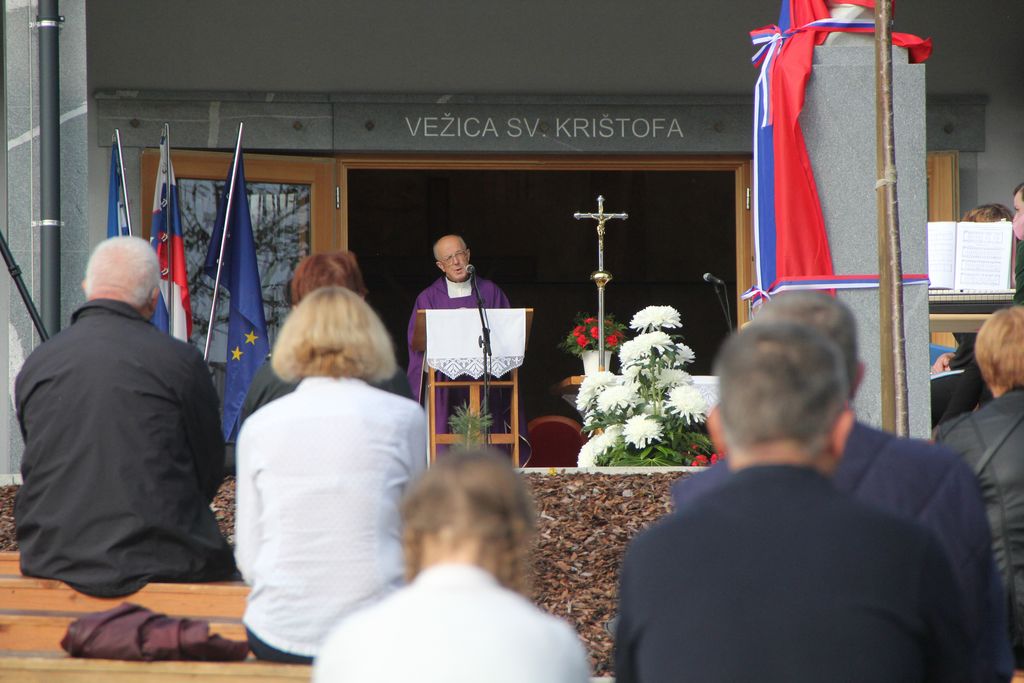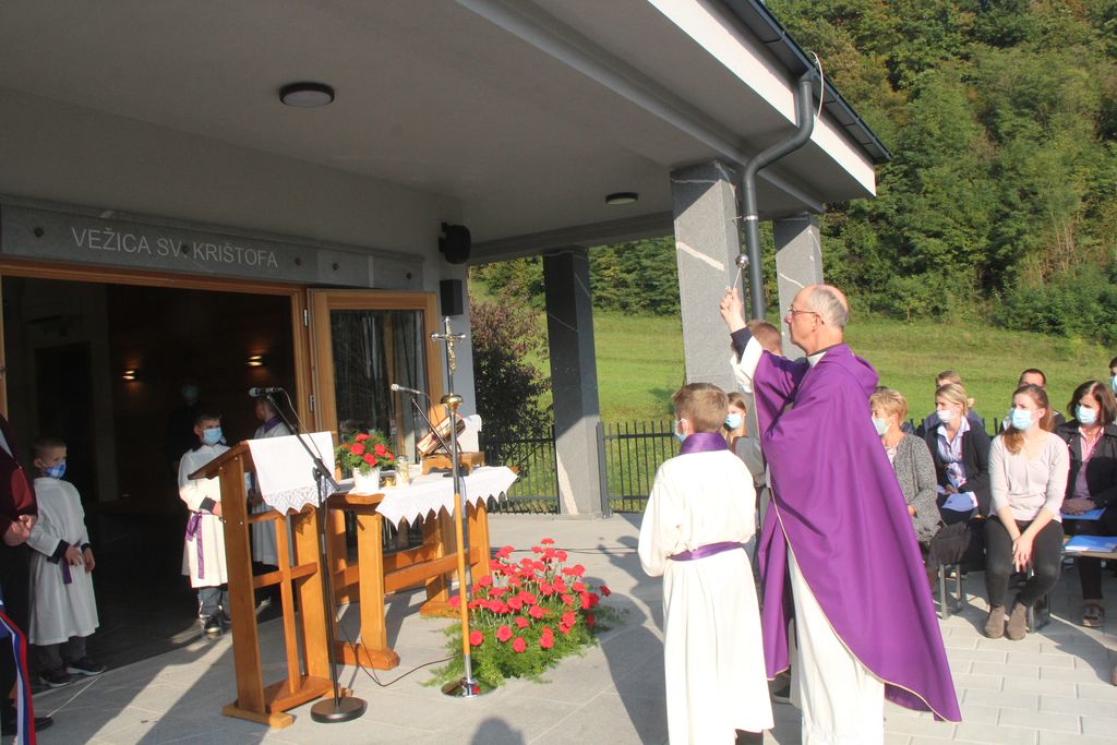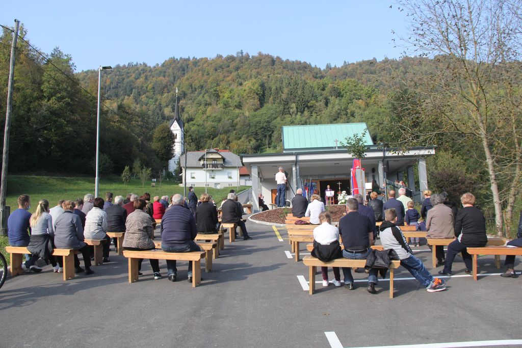 Sledil je blagoslov objekta in spomenika, ob tem pa je župnik Janez Smrekar, ki je še pred tem daroval sveto mašo, zbrane spomnil na svetost tega kraja: 'Tu bodo počivali naši rajni, preden jih odnesemo na božjo njivo, na pokopališče. Na tem svetem kraju se bomo z njimi srečevali v hvaležnem spominu in zaupni molitvi dokler tudi mi ne bomo na pragu večnosti. Naj bo ta blagoslov izraz vere v Jezusa Kristusa, ki je našim rajnim in tudi nam vstajenje in večno življenje.'