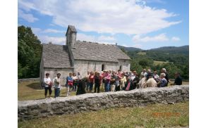 Najlepše doživetje tega dne nas je čakalo v Kalu nad Kanalom, kjer smo si ogledali podružnično cerkev sv. Tomaža, ki leži nad vasjo Koprivišče. Cerkev je bila v gotskem slogu zgrajena konec 15. stoletja in pozneje obnovljena. Do nje nas je pripeljal lokalni vodič, ki je v zadnjem delu poti, tik pod cerkvijo, s svojim vriskanjem in klicanjem iz gozda privabil neko damo v 120 let starih oblačilih. Ta je s svojim hudomušnim nastopom v tamkajšnjem dialektu predstavila zgodovino kraja in cerkve ter očarala in nasmejala slehernega izmed prisotnih.