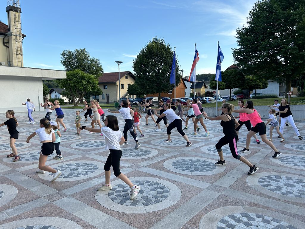 vroče torkovo popoldne dekleta in otroci zaplesali na Občinskem trgu v Horjulu