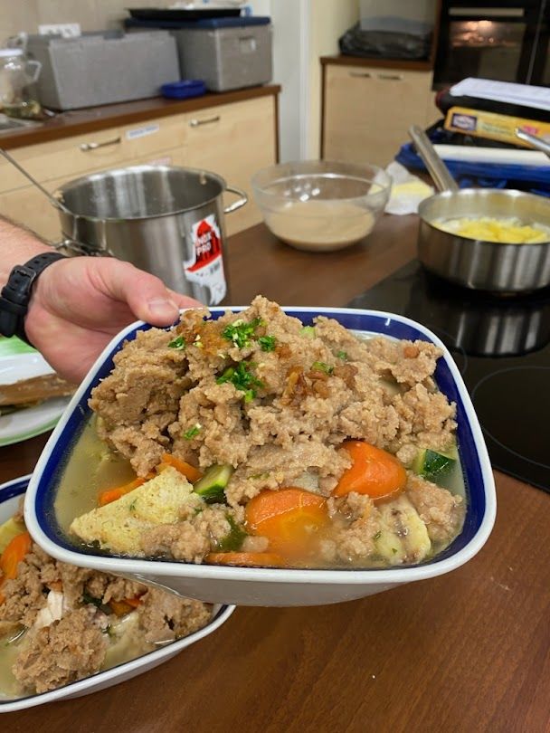 Društvo kmečkih in podeželskih žena Dobrova - Horjul - Polhov Gradec je v četrtek, 16. februarja, v prostorih Osnovne šole Horjul organiziralo kuharski tečaj tradicionalnih slovenskih jedi. Na tečaju je sodelovalo 37 udeleženk in tudi en pogumen kuhar željan spoznavanja novih veščin kulinarike. Pod mentorstvom so pripravili pester jedilnik, na katerem so se znašli krompirjev langaš, brancin v vrečki, žganci iz pirine moke ob piščančji obari, mesni polpeti z radičem v svinjski mrežici in za sladico še kuhan jabolčni zavitek z vaniljevo kremo, flambiranimi rozinami in cimetom. Naslednjič se dobijo prav tako v Horjulu, in sicer 16. marca ob 18. uri, ko bodo kuhali značilne primorske jedi. Tečaja se lahko udeleži vsakdo, ki ima željo po kuhanju in bi rad izpopolnil svoje kulinarične veščine. Prispevek za sodelovanje znaša 10 evrov.