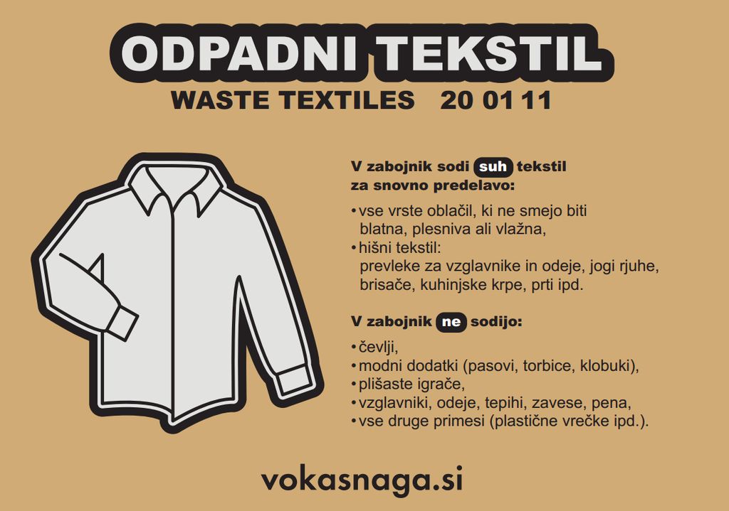 Hvala za vaše sodelovanje ter pomoč pri pravilnem zbiranju in ravnanju z odpadnim tekstilom.