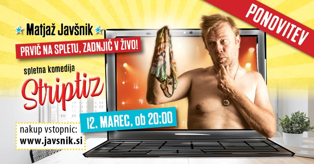 Zaradi izjemnega zanimanja ponovitev poslovilne predstave Striptiz legendarnega slovenskega komika Matjaža Javšnika.
