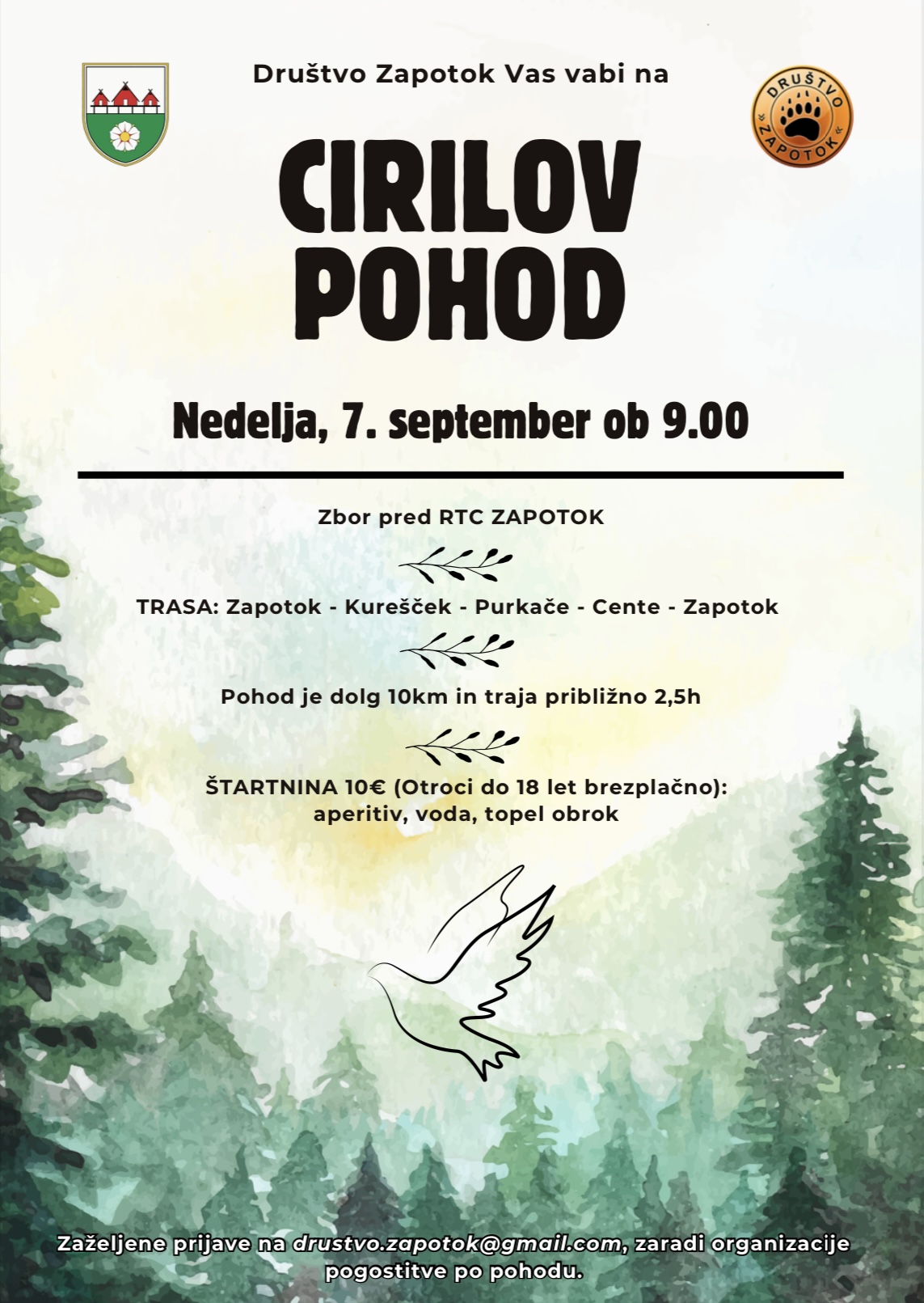 Vabljeni na pohod v okolici Kureščka v organizaciji Društva Zapotok v nedeljo, 7. 9. 2025 ob 9.00. Zbor je pred RTC Zapotok.