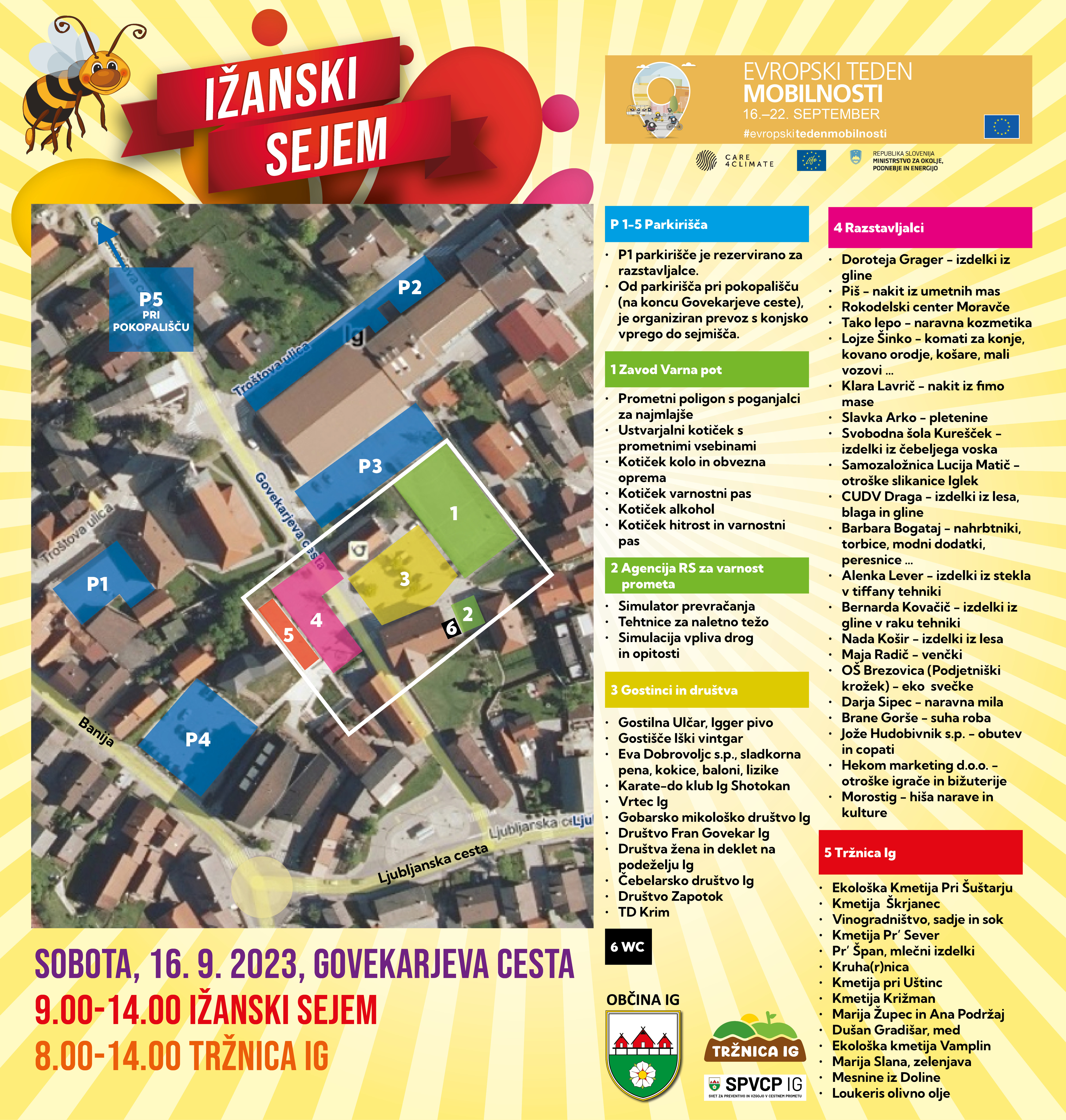 Vabljeni na tradicionalni jesenski Ižanski sejem, ki bo v soboto, 16. 9. 2023 v središču Iga, med 9. in 14. uro. Prostor za predstavitev bodo imela domača društva, izdelovalci domače obrti, umetniških izdelkov in pridelovalci zdrave hrane ter dobrot s podeželja. Kot običajno bodo na Ižanskem sejmu potekale delavnice, prikazi rokodelskih spretnosti in otroški program. Na sejmu bo poskrbljeno za dobro hrano. Hkrati bo potekala že dobro uveljavljena Tržnica Ig s ponudbo sveže sezonske zelenjave, domačih pridelkov, kruha, piškotov, mesnin in drugih dobrot.