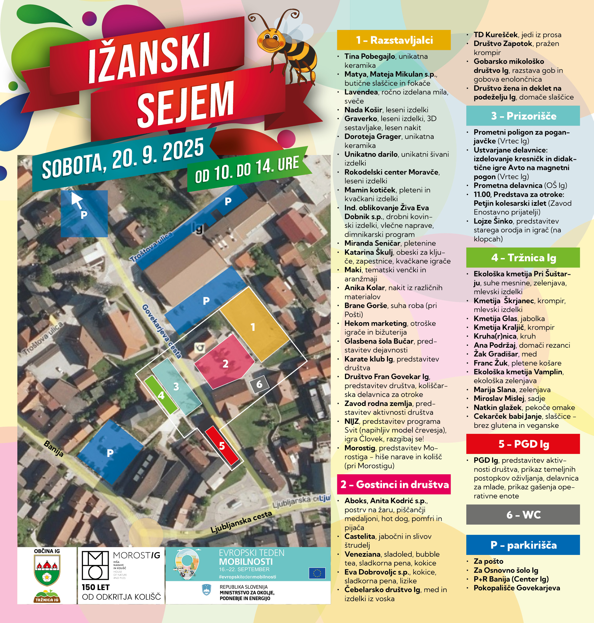 Vabljeni na tradicionalni jesenski Ižanski sejem, ki bo v soboto, 20. 9. 2025 v središču Iga, med 10. in 14. uro. Predstavili se bodo: domača društva, izdelovalci domače obrti, umetniških izdelkov in pridelovalci zdrave hrane ter dobrot s podeželja.