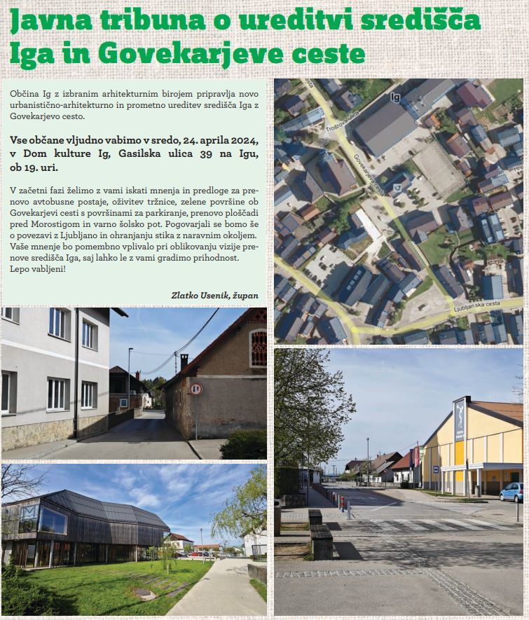 Občina Ig z izbranim arhitekturnim birojem pripravlja novo urbanistično-arhitekturno in prometno ureditev središča Iga z Govekarjevo cesto.