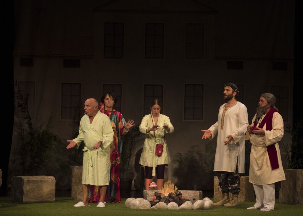V tej »prerodni parodiji«, kakor jo duhovitopodnaslovi avtorica, imamo na eni strani tri guruje, učitelje oziroma voditelje. Njim nasproti so štirje udeleženci odmika, ki so prišli iz sila različnih razlogov, a so terapije za vsakega od njih sila podobne.