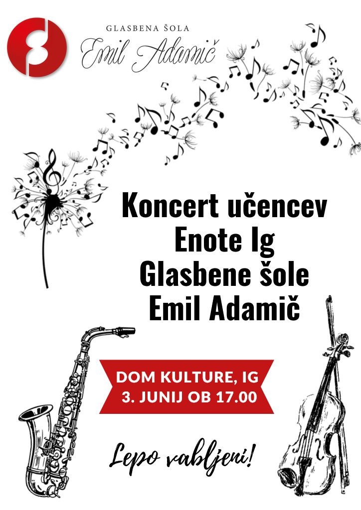 Vljudno vabljeni na Koncert učencev Glasbene šole Emil Adamič, enote Ig,