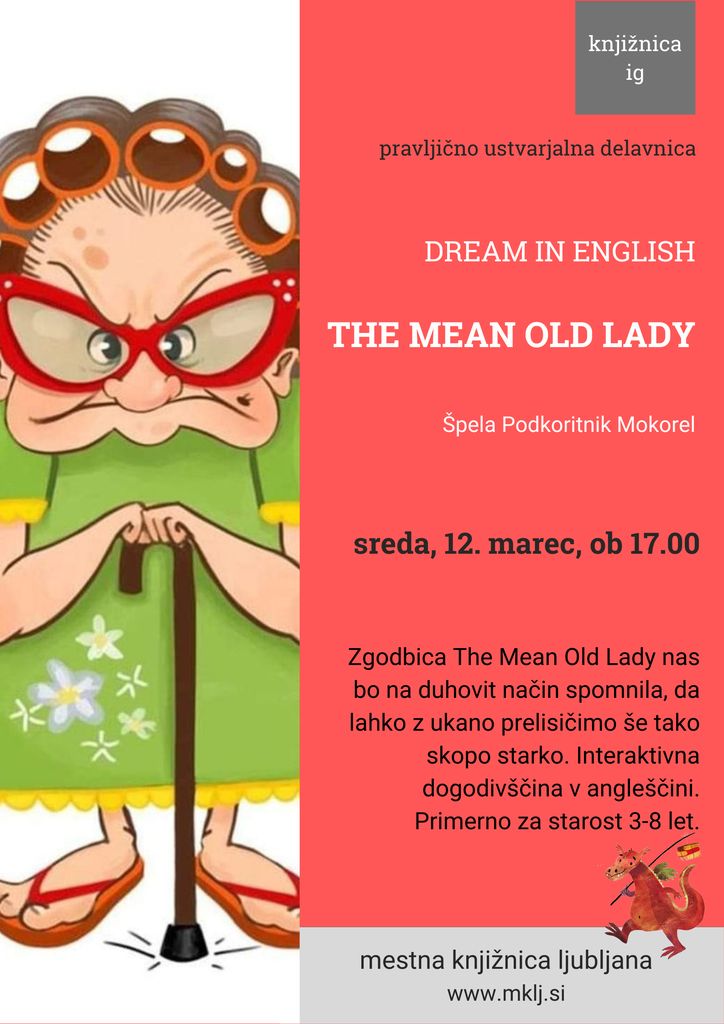 pravljično ustvarjalna delavnica v angleščini DREAM IN ENGLISH; The Mean Old Lady (Špela Podkoritnik Mokorel)