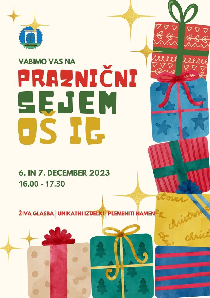 Vabljeni na praznični sejem OŠ Ig, ki bo v sredo, 6. in četrtek, 7. 12. med 16.00 in 17.30.