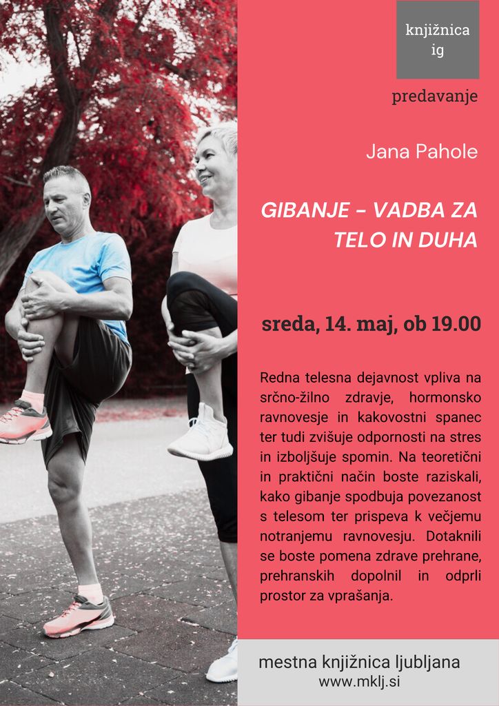 predavanje in delavnica GIBANJE - VADBA ZA TELO IN DUHA (Jana Pahole)