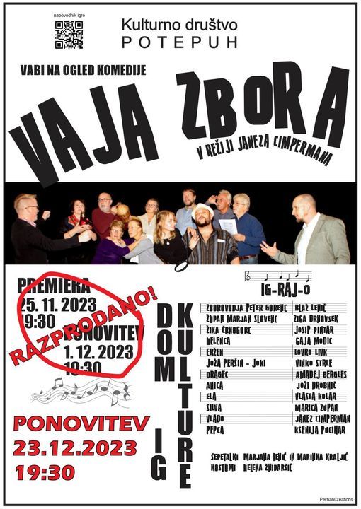 Tretja ponovitev bo v soboto, 23. 12. 2023 ob 19.30 uri v Domu kulture Ig.