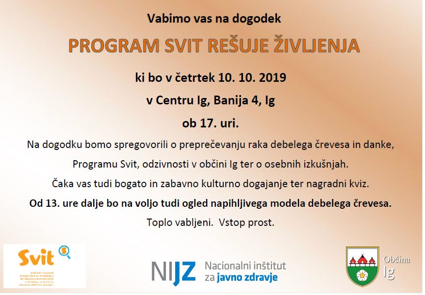 Organizator: Program Svit, Nacionalni inštitut za javno zdravje in Občina Ig