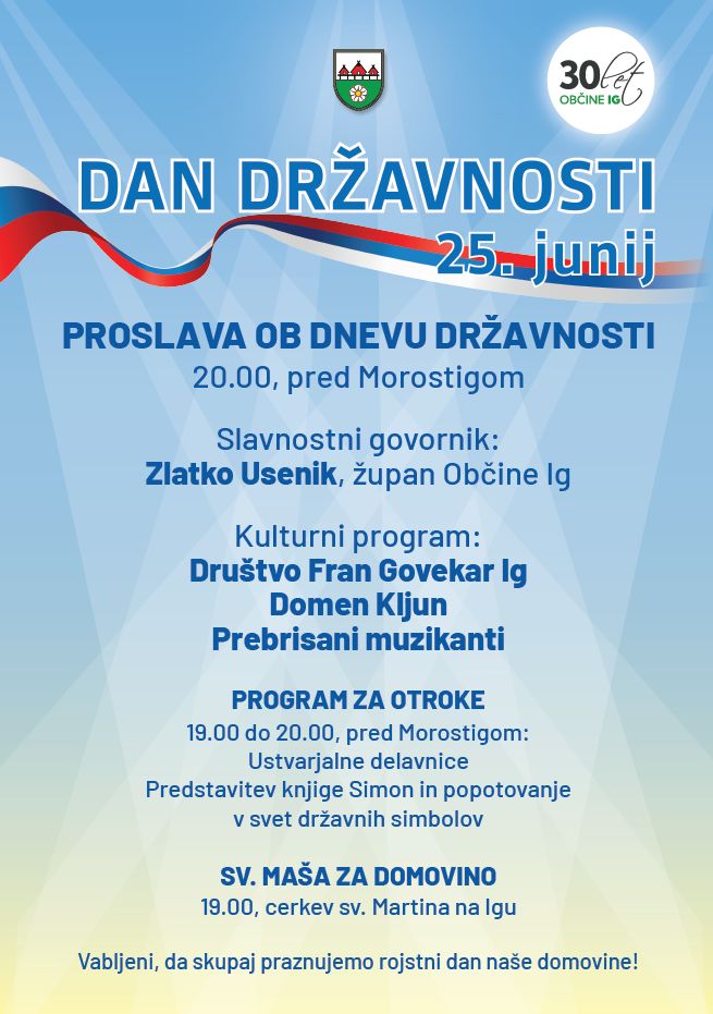 Vljudno vabljeni na proslavo ob prazniku dnevu državnosti s spremljevalnim programom.