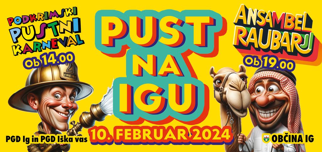 Letošnji Pust na Igu organizira Občina Ig v sodelovanju s PGD Ig in PGD Iška vas. Vabljeni, da letošnjo pustno soboto preživite na Igu!