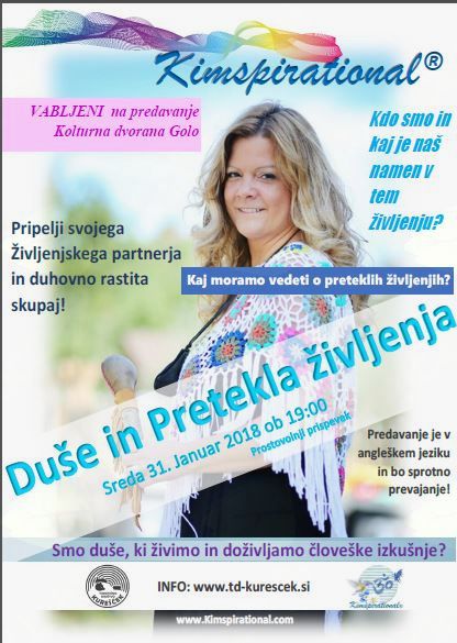 Morda bomo prav na predavanju Kim Doucette, šamanke in angelske terapvetke iz Kanade, dobili odgovor na to vprašanje. Kim bo v sredo 31. januarja 2018 spregovorila o smislu in pomenu prehajanja človeške duše v onostranstvo, kako se pripraviti na ta prehod, kako doseči spravo s svojimi bližnjimi preden odidejo, predvsem pa, kam sploh duša odide, ko telo umre. Kim ima naravni dar komunikacije z dušami v onostranstvu in z angeli. S pomočjo tega daru bo stopila v stik z našimi bližnjimi, ki so že prešli v onostranstvo, in nam pomagala najti odgovore.
