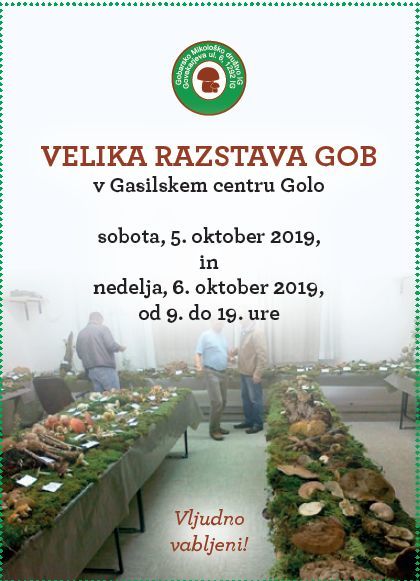 Vabljeni na veliko razstavo gob na Golo, ki bo v soboto, 5. oktobra 2019 in v nedeljo 6. oktobra 2019 od 9. do 16. ure.