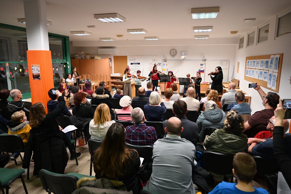 Program je bil izjemno pester in je obsegal skladbe različnih glasbenih obdobij ter slogov – od klasičnih del Händla, Dvořáka in Czernyja do sodobnejših melodij ter priljubljenih božičnih uspešnic, kot so Jingle Bells, Let it snow, Last Christmas in We Wish You a Merry Christmas. Posebno mesto so imele tudi ljudske in otroške skladbe, ki so koncertu dodale igrivost in toplino. Na odru so se zvrstili učenci različnih starosti in instrumentov, tako v solističnih nastopih kot v komornih zasedbah. Prav raznolikost instrumentov in starostnih skupin je koncertu dala posebno dinamiko ter pokazala širino dela in predanost učiteljev ter učencev Glasbene šole Emil Adamič.