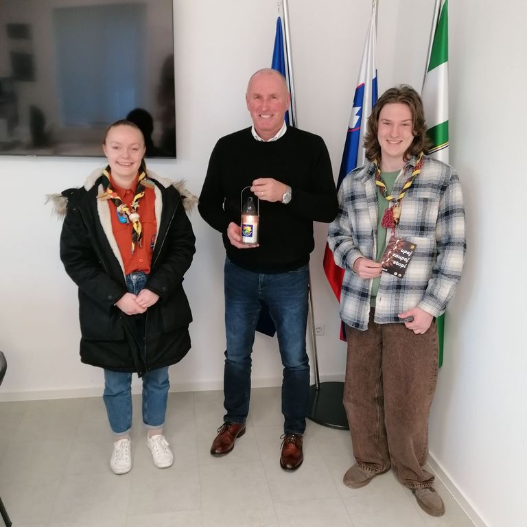 Predstavnika skavtskega stega Škofljica 1 so na občino prinesli Luč miru, ki predstavlja simbol božiča in nas vse nagovarja k miru, upanju in sočutju.