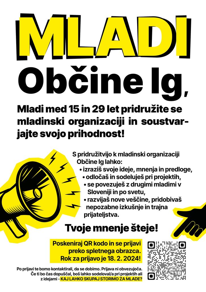 Vabljeni, da se pridružite Mladinski organizaciji Občine Ig, ki združuje mlade posameznike, stare med 15 in 29 let in postanete del skupnosti, ki si prizadeva za aktivno vključevanje mladih v oblikovanje prihodnosti naše občine ter soustvarjate pozitivne spremembe v našem okolju. Vaša vključenost je ključna za trajne spremembe, zato se pridružite mladinski organizaciji Občine Ig, da skupaj oblikujemo prihodnost in spreminjamo naš kraj na bolje.
