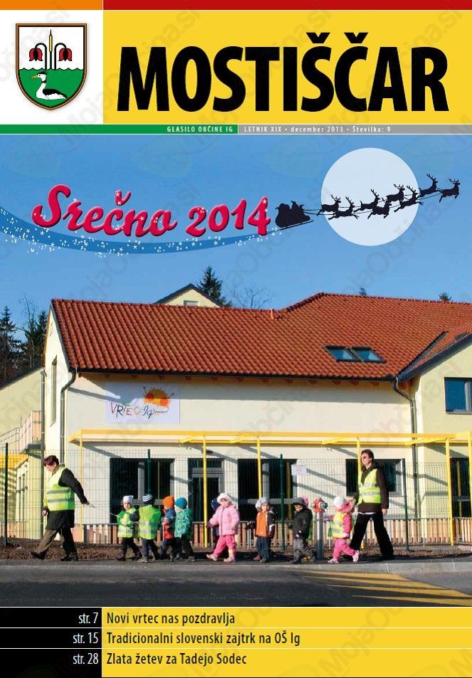 Pred vami je praznična številka glasila Mostiščar. Zanimivi članki, obširni intervju z županom ter novoletna voščila, bodo poprestrila to decembrsko številko. Največ prispevkov je namenjenih novemu Vrtcu Ig, z bogato slikovno prilogo.
