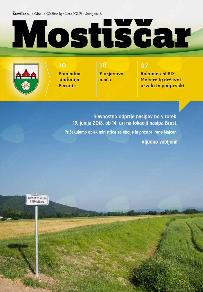 V zadnji predpoletni številki Mostiščarja boste že našli vabilo za Ižanski sejem, ki bo 15. sepembra. Pretekli mesec se je veliko pelo, preberete si lahko kako je bilo na koncertu ŽPZ Perunike in OPZ Sladkosnedi. Predstavljena je nova publikacija o naših krajih, ob 20-letnici jo je izdalo Turistično društvo Kurešček. Preberete si lahko reportažo z gasilskih tekmovanj in se udeležite gasilske veselice. Ob Dnevu državnosti in praznovanju kresne noči, vabljeni v soboto, 23. junija ob 20. uri na prireditev na Golo. Vabljeni na pireditve naših društev tudi v poletnih mesecih. Vsem bralkam in bralcem občinskega glasila Mostiščar želimo prijetne počitniške dni.