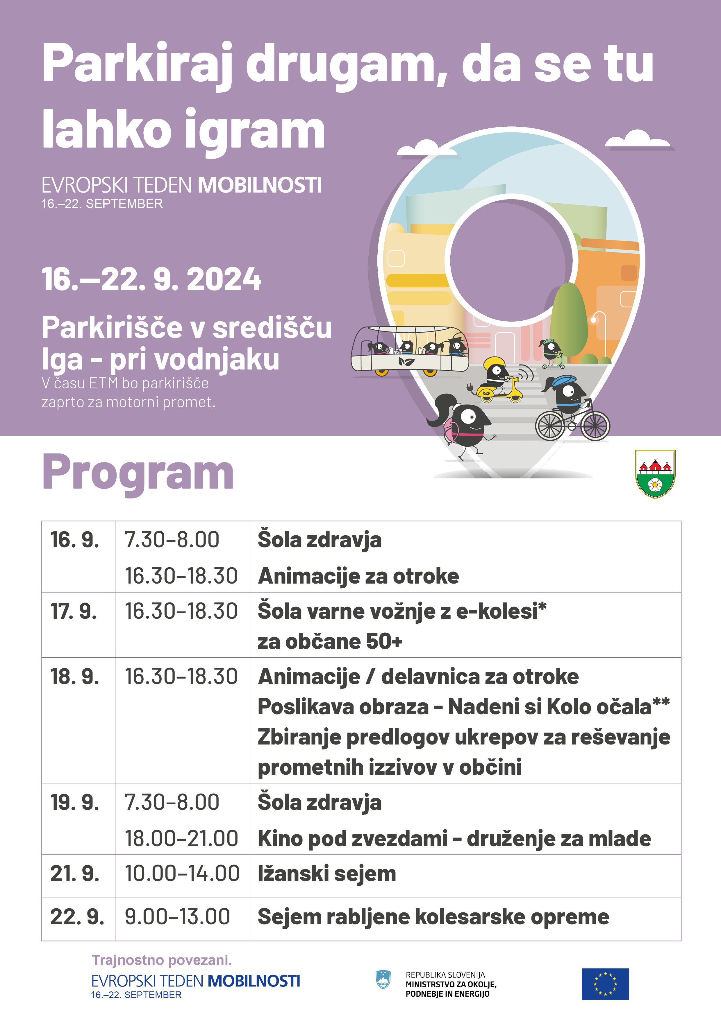 22. septembrom 2024 bo v okviru projekta Evropski teden mobilnosti, v središču Iga zaprto parkirišče pred hišo