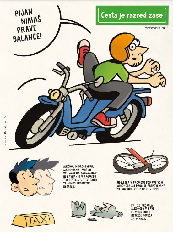 Javna agencija Republike Slovenije za varnost prometa naproša vse udeležence v prometu, da v času martinovega vikenda, skupaj širimo zavedanje o nedopustnosti udeležbe v prometu pod vplivom alkohola.