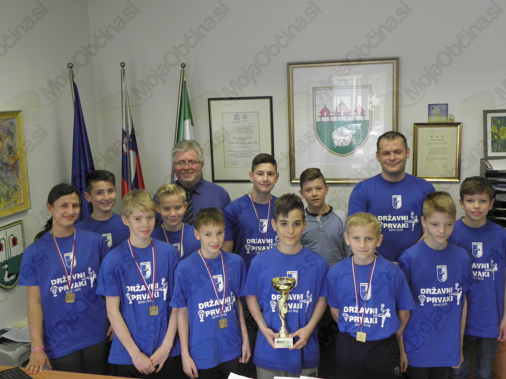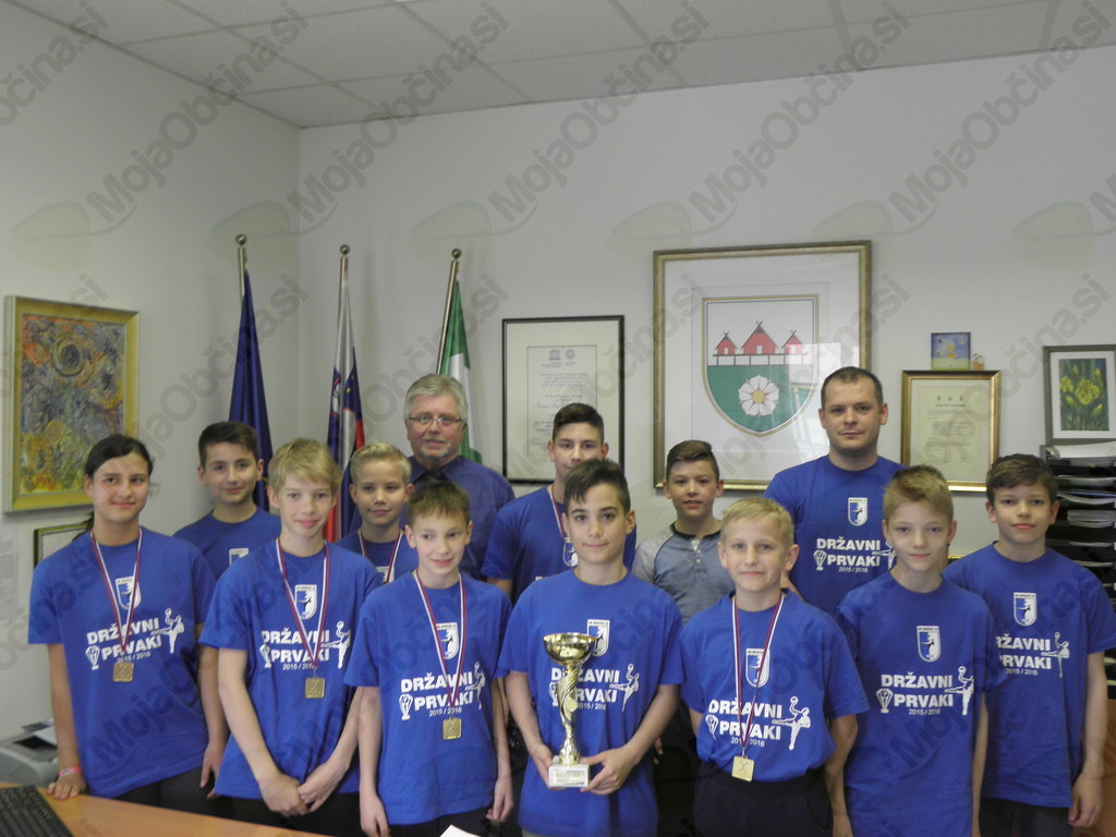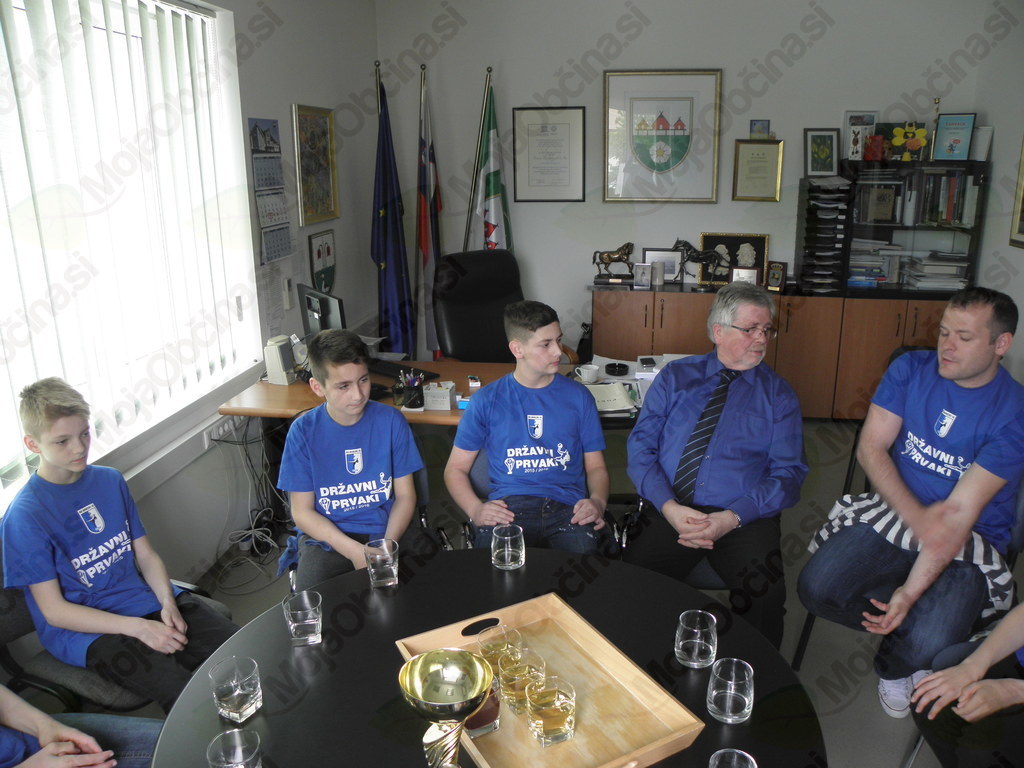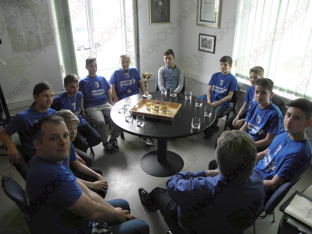 Mlajši dečki B, Rokometnega kluba Mokerc, državni prvaki, so bili na sprejemu pri županu Janezu Cimpermanu.