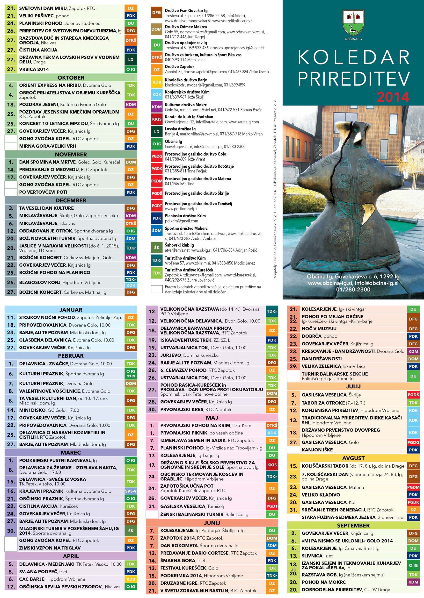 Pred vami je koledar prireditev v naši Občini za leto 2014.