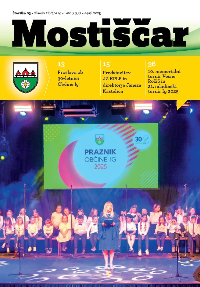 Izšla je aprilska številka Mostiščarja, ki prinaša številne zanimive vsebine. Ne zamudite prispevka o proslavi ob 30-letnici Občine Ig, na kateri so bila podeljena občinska priznanja, intervjuja z direktorjem JZ Krajinski park Ljubljansko barje ter poročila z največjega šahovskega dogodka v naši občini.