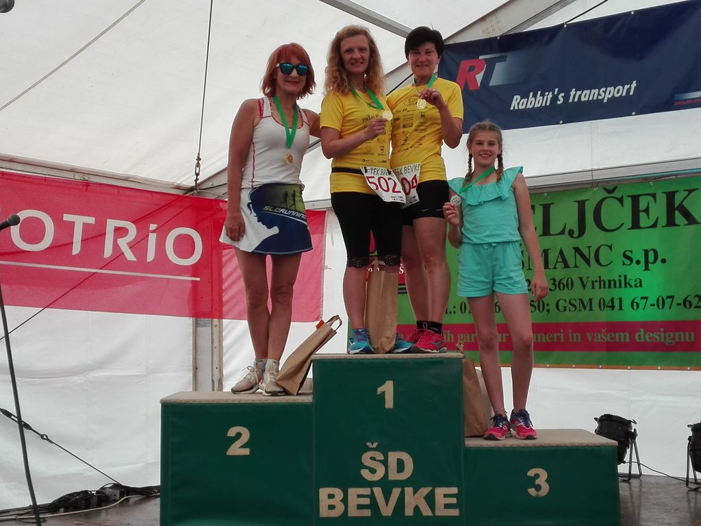 Teka ob 9.30 na 1 km se je udeležila Inna Novak in v svoji kategoriji deklet prejela priznanje in srebrno kolajno. Ob 10.15 pa se je pričel tek za odrasle in med tekači so se udeležile teka na 21 km: Nevenka Bevčič, Vesna Novak in prvič na pol maratonu Branka Klemenčič. Krožna trasa je potekala okoli parka in po slikovitih obronkih vasi Bevke. Vse tri tekačice so prejele v svoji kategoriji zlate kolajne, zato jim še naprej kličemo veliko uspehov pri novih pretečenih kilometrih.