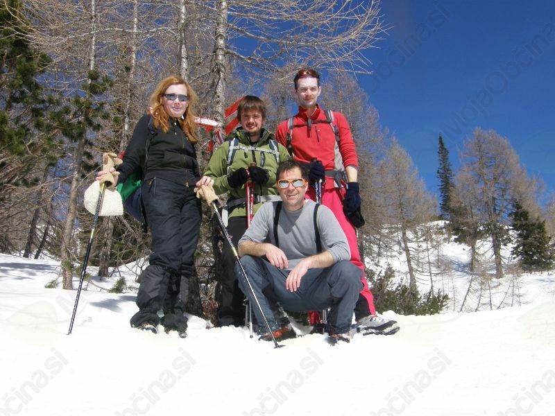 Izhodišče je bilo parkirišča v bližini planine Zajavornik na Pokljuki. Pot pelje skoraj po sredini te planine. Levo in desno veliki travniki pokriti z belim snegom, temperatura pa je bila dovolj nizka, da je pod čevlji škripalo, zima. Nadaljevali so skozi gozd proti Blejski koči. Pot je bila uhojena, nič poledenela, tako da so bili kar malce presenečeni, kako hitro smo do koče prišli. Po kratkem okrepčilu smo nadaljevali v smeri 2014 m visoke Debele peči. Gozd je bil za njimi, odprl se je pobeljen visokogorski svet. Tudi tu je bila pot uhojena, na izpostavljenih mestih je vlekel veter. Do vrha so srečali malo planincev. Nagrajeni so bili s krasnim razgledom na vse strani. Triglav, malo pod njim Kredarica, Rjavina, po dolini Krme in Kota do Mojstrane, pa navzgor na Karavanke, in po njih na Kamniške alpe, spodaj malce meglen Bled, pa oddaljena Sorica, Kobla, bližnji Viševnik, Triglav, pod njim Kredarica, ... Kolikokrat sem se sam zavrtel, ne vem. Nato so po isti poti sestopili do odcepa za bližnji vrh Brda, 2008 m. Seveda so splezali tudi na Brda in čez ter se po drugi poti spustili do Blejske koče. Če so bili zjutraj skoraj edini gosti, pa sedaj ni bilo več tako. Koča je bila polna obiskovalcev vseh generacij. Po daljšem in zelo okusnem okrepčilu so nadaljevali z vračanjem po isti poti proti izhodišču. Tudi pri vračanju niso imeli težav. Če je že kdo pristal na zadnjici, je bilo to samo in zgolj samo zaradi zmehčanega snega. Tudi planina Zajavornik je oživela, klopce niso bile več prazne, v daljavi pa se je našel tudi kakšen tekač na smučeh. Še par korakov in izleta je bilo konec.