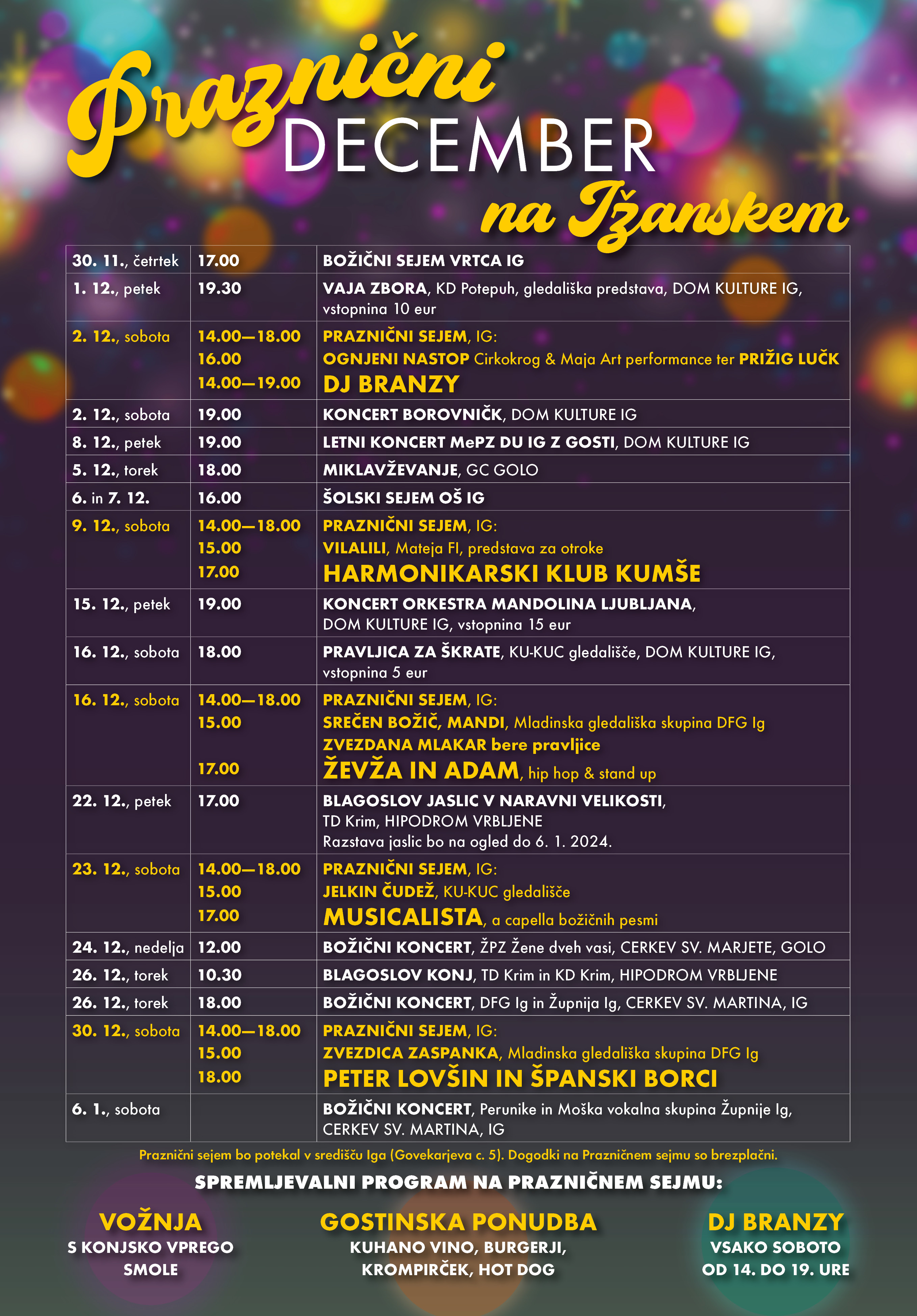 V mesecu decembru se obeta pestro dogajanje v središču Iga in nekaterih vaseh.