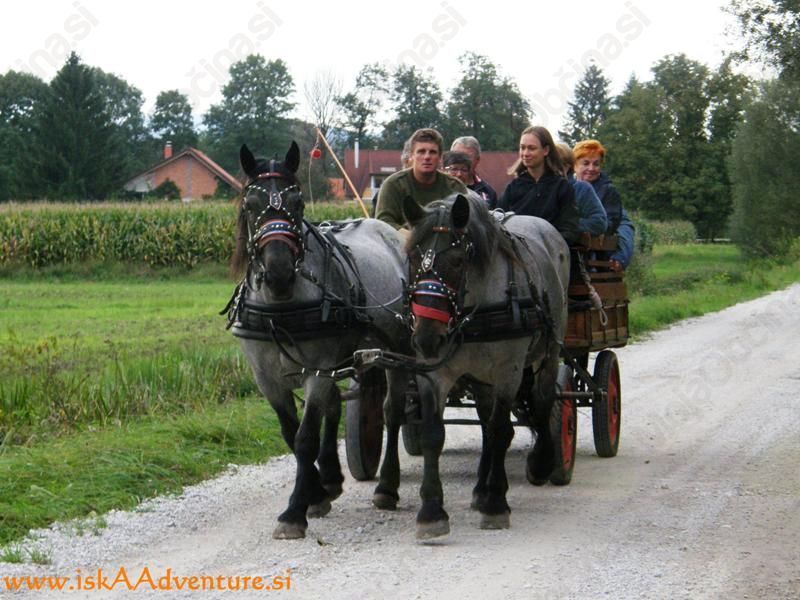 Po večkratnih poizkusih, glede na vreme, je le uspela izvedba vožnje s konjsko vprego. Iz vasice Lipe smo se odpravili do naravnega rezervata Iški morost, kjer smo si ogledali učno pot in ptičjo opazovalnico. Od tam pa preko Tomišlja in Podkraja nazaj do Lip. Hvala konjarju Miranu in Marjanu in biologinji Alenki.