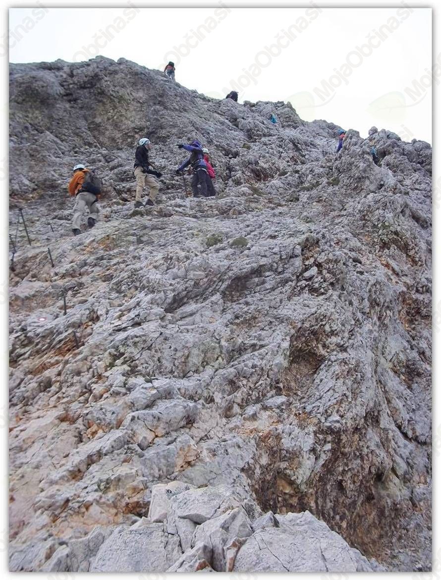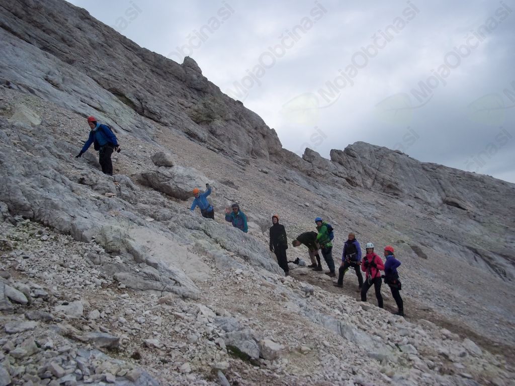 Zgodaj zjutraj ob 5:00 smo se z avtomobili odpravili in na OMW Radovljica počakali še ostale kandidate, spili jutranjo kavico, čaj in se odpravili proti Gorenjski v dolino Krme, kjer smo pustili avtomobile in nadaljevali pešpot po gozdni cesti, čez obsežna prodišča, vzpenjali smo se skozi strnjen gozd in na višini 1763 m pastirski stan Prgarca prišli na travnato ravnico. Sledil je kratek počitek, malica, nato pa smo spet nadaljevali pot do pastirske koče na planini Zgornja Krma. Pot se je začela vse strmeje vzpenjati in povzpeli smo se do Konjskega sedla, s sedla pa smo nadaljevali pot v smeri Planike, kjer smo za prvi dan imeli postanek in prenočišče, ki ga je predhodno že rezerviral naš Franci P. Do Planike so tudi zelo dobro hodili najmlajši kandidati stari 8 let Matija, Anže in Jan P., za kar jim iskreno čestitamo za njihov podvig. Ker je vreme dobro kazalo in so se meglice razpršile, smo se ustrezno opremili, na glave poveznili čelade in oprtali varovalne pasove ter nadaljevali pot od Planike po markirni poti v smeri Triglava, se povzpeli do vstopa v plezalni del, nadaljevali pot po varovani zelo strmi grebenski poti in prišli do vrha.