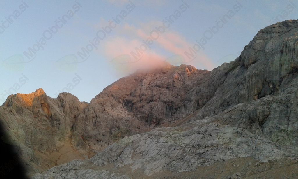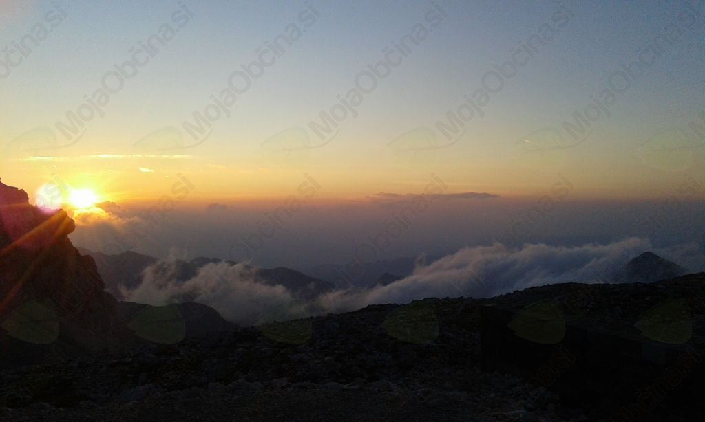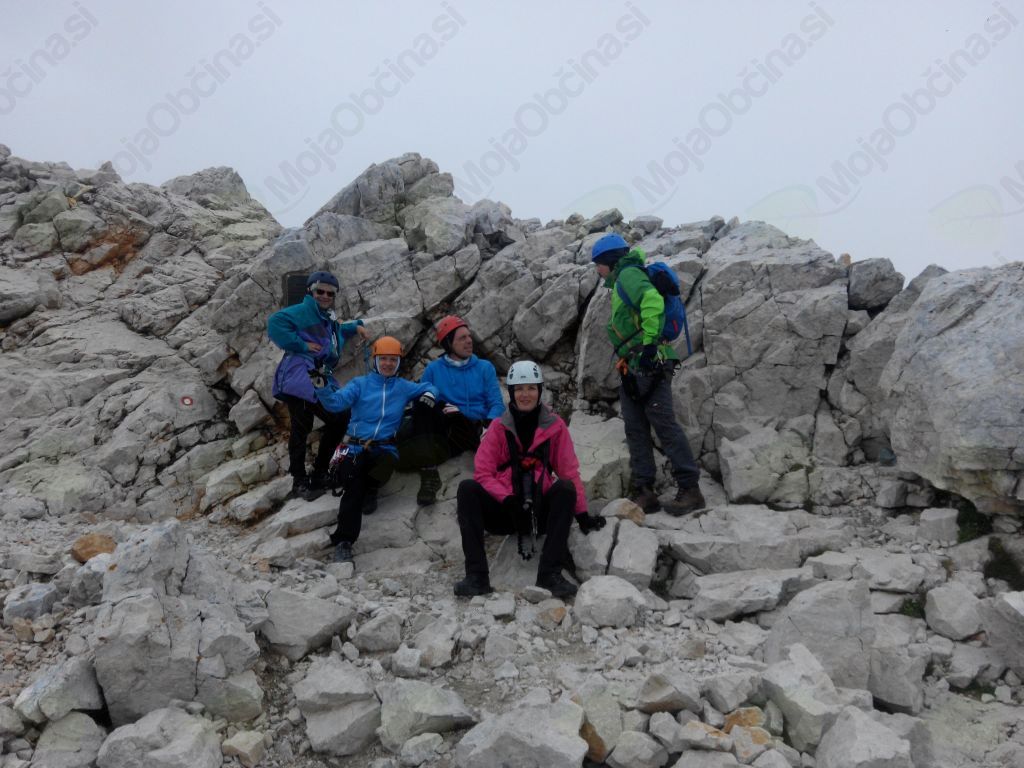Vrh Triglava je bil v meglici, tako da vidljivost ni bila najboljša. Naredili smo nekaj posnetkov, se požigosali in počasi odšli nazaj proti dolini naši postojanki Planika (2401 m). Bili smo že pošteno lačni, saj smo cel dan pili vodo, jedli sendviče, čokoladice, rozine, da smo imeli energijo.