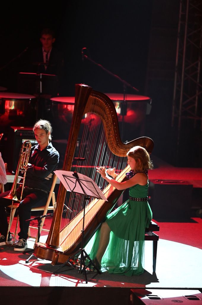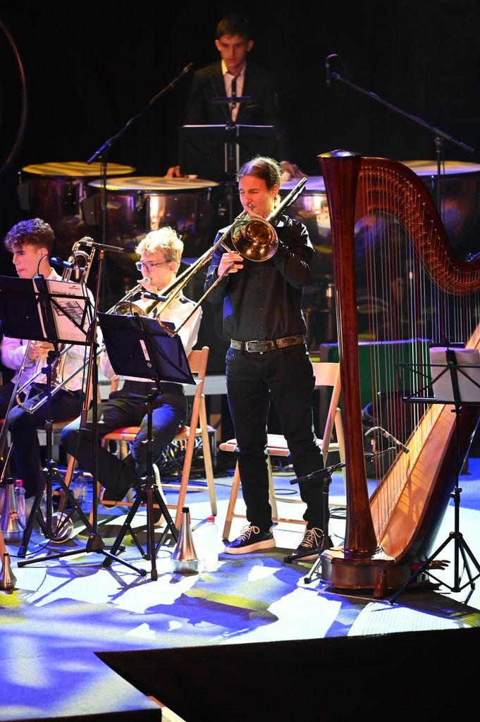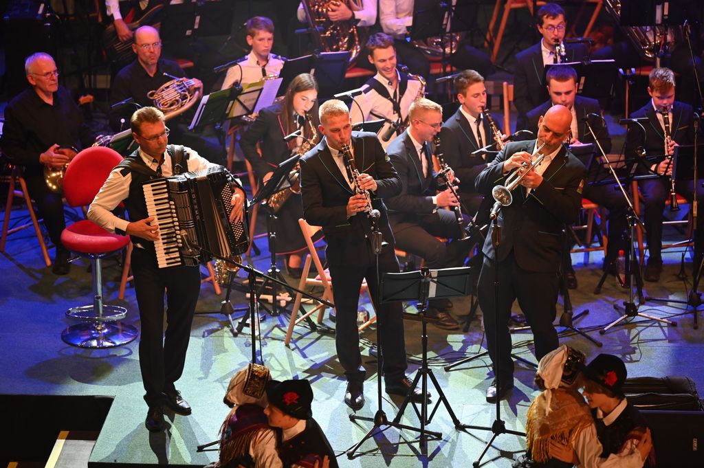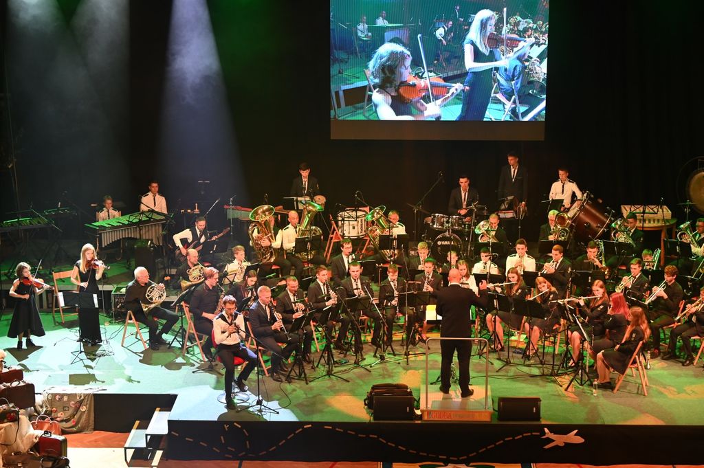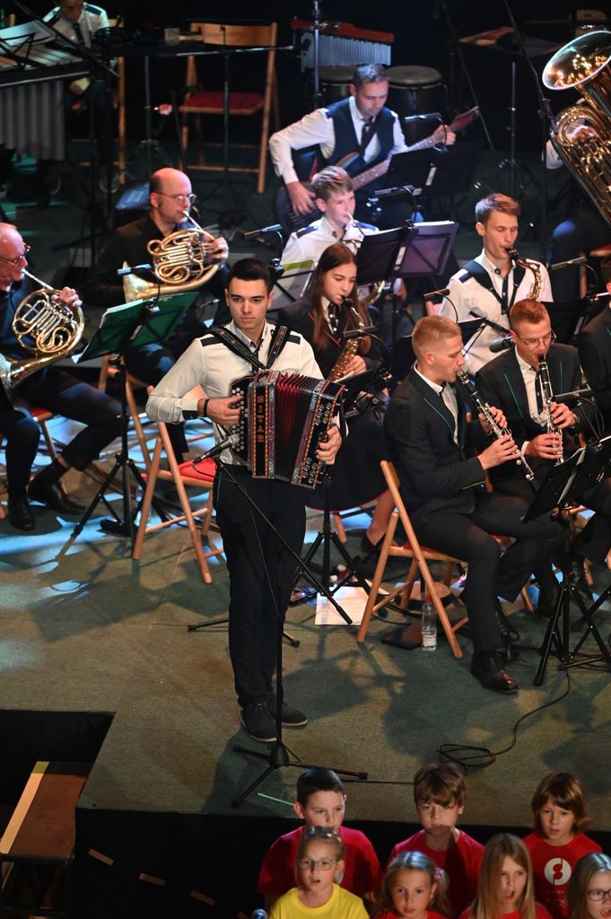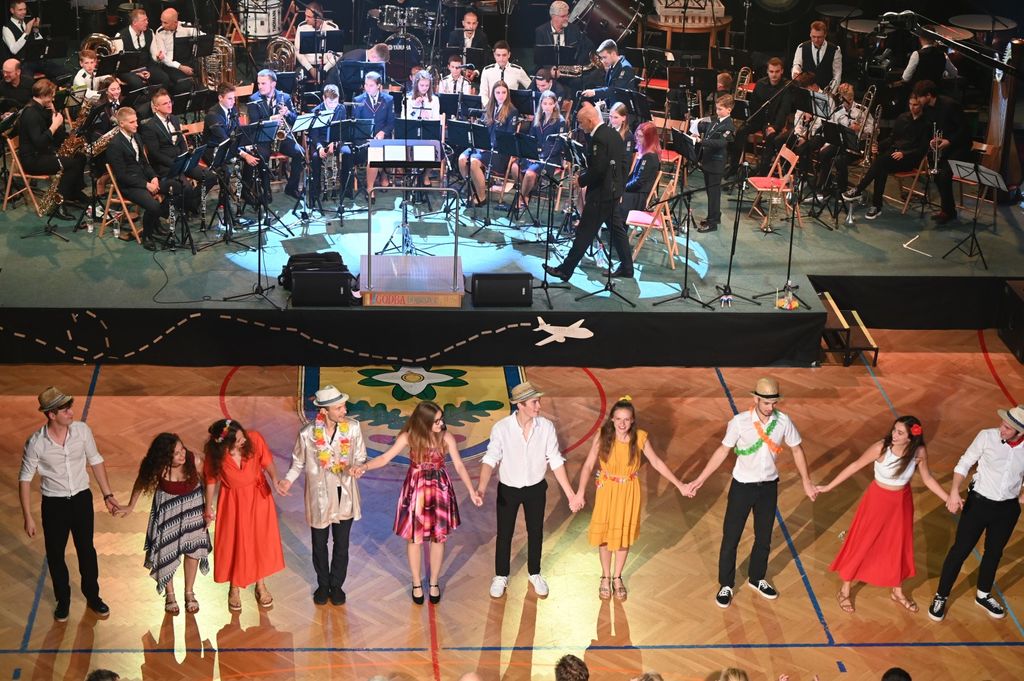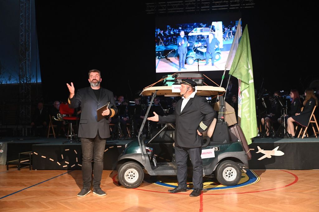 Potovanje okoli sveta ima še dandanes prav mističen prizvok in je poseben podvig za pustolovce. Zahteva veliko priprav, vztrajnosti, iznajdljivosti in še kanček blagoslova, saj je na poti veliko nepredvidenih dogodkov. Godbeniki so priprave na letošnji koncert začeli že na začetku leta in skoraj devetmesečne priprave so obrodile neverjetno potovanje okoli sveta. Do potankosti izdelane podrobnosti, dobra organizacija in skrbno izbran program so se že v prejšnjih letih pokazali v podobi izjemnega koncerta Noč godbe, letos pa je bilo potovanje še malo zahtevnejše. Neverjetno, a na pot okoli sveta so se podali kar dvakrat, kot že tradicionalno, v petek in nedeljo, da je bilo dovolj prostora za vse! Brez podpore donatorjev, ki jim godbeniki izrekajo veliko hvaležnost, tudi tokrat ne bi šlo. Na vhodu v dvorano so nas ob letalu pričakali nasmejani pilot in kopilot s stevardesama in potovanje se je kaj kmalu začelo. Pod taktirko Mateja Rihterja je Združeni otroški orkester Glasbene šole Emil Adamič skupaj z Združenim zborom GŠEA ponesel publiki sporočilo, da je “življenje vrtiljak” in da se žal le-ta včasih zavrti tudi v napačno smer. Kako drugače bi lahko povzeli silovite poplave, ki so v avgustu prizadele naše kraje. Godba Dobrova - Polhov Gradec je tako v sodelovanju z Občino Dobrova - Polhov Gradec posvetila koncert obnovi škode po poplavah in koncert obarvala v povsem dobrodelno noto. Župan Jure Dolinar je v svojem nagovoru izrazil željo, da bi nas ta izkušnja, ki nas je povezala v najtežjih trenutkih, opominjala, da je to prava pot tudi za mirne čase - da lahko skupaj sodelujemo in spreminjamo svet na bolje. Še preden so se gledalci dobro zavedali, je letalo že poletelo, najprej v Italijo na skrivnosti italijanske kuhinje in zgodovine, ter naprej v ulice romantičnega Pariza, v čase francoskega šansona in plesa. Irski String of Fire, ki jo je za to priložnost priredil Aljaž Sečnik, je ob vodstvu odličnih violinistk Lucije Ane Dragaš in Tine Blaznik na noge spravil prve gledalce. Hiter skok v Španijo in potem še v Afriko je prinesel prvinske afriške ritme, ki so jih zapeli in odplesali učenci in učitelji v Združenem zboru OŠ Dobrova in OŠ Polhov Gradec. S pravo pisano predstavo so Svetlice ozaljšale brazilsko Mas que nado ter z odličnim petjem prinesle južnoameriške ritme, ki so jih s plesno-igralskim vložkom nadaljevali člani skupine Teatro. Skupaj z big band zasedbo Godbe so v kubanskih Havana in Cuban Pete dodobra razgreli občinstvo. Jazz ritmi legendarne glasbe Glenna Millerja v ZDA so nas vrnili v čas med obema vojnama ter pripravili teren za prehod Pacifika. V deželi vzhajajočega sonca so nas pričakali člani skupine Teatro, ki so z igro senčnega gledališča dopolnili čustveno zgodbo japonskega ljudskega napeva. Kitajski Glineni vojščaki so s tolkalskimi vložki odgnali še zadnje pomisleke - za godbo pri glasbi ni ovir! Kako drugače kot klasično izjemno bi lahko opisali Cvetlični valček iz Hrestača, v katerem so godbeniki dokazali, da jim niti klasična glasba ni tuja, še posebej ob pravi paši za oči, ki so jo prikazale baletke Nižje baletne šole KGBL. Madžarski Csardas ni šel brez violine in Neli Božič, še ena klasična Na lepi modri Donavi pa ne brez dveh izvrstnih parov iz Plesnih šol Salsero in Bolero. Ob koncu sta voditelja večera, Jure Sešek in Grega Čuden vendarle ujela godbeno letalo in skupaj z godbeniki pristala na Letališču Emila Adamiča na Dobrovi, najprej z venčkom Avsenikovih ter nato s slavnostnim skupnim zaključkom vseh nastopajočih na koncertu s pesmijo Moja Slovenija. Dvourni koncert je minil, kot bi mignil in navdušeni gledalci so polni vtisov že razmišljali, kaj novega še lahko naredijo godbeniki prihodnje leto. S pripravami začnejo v začetku leta 2024 … in prav gotovo nas prihodnje leto čaka spet kaj posebnega. Vabljeni že danes, da se godbenikom pridružite na predzadnji vikend v oktobru, še prej pa seveda spremljajte godbene objave in pridite na Valentinov ples, Prvomajsko budnico… in še kaj vmes. Janez Dolinar Godba Dobrova - Polhov Gradec in Glasbena šola Emil Adamič