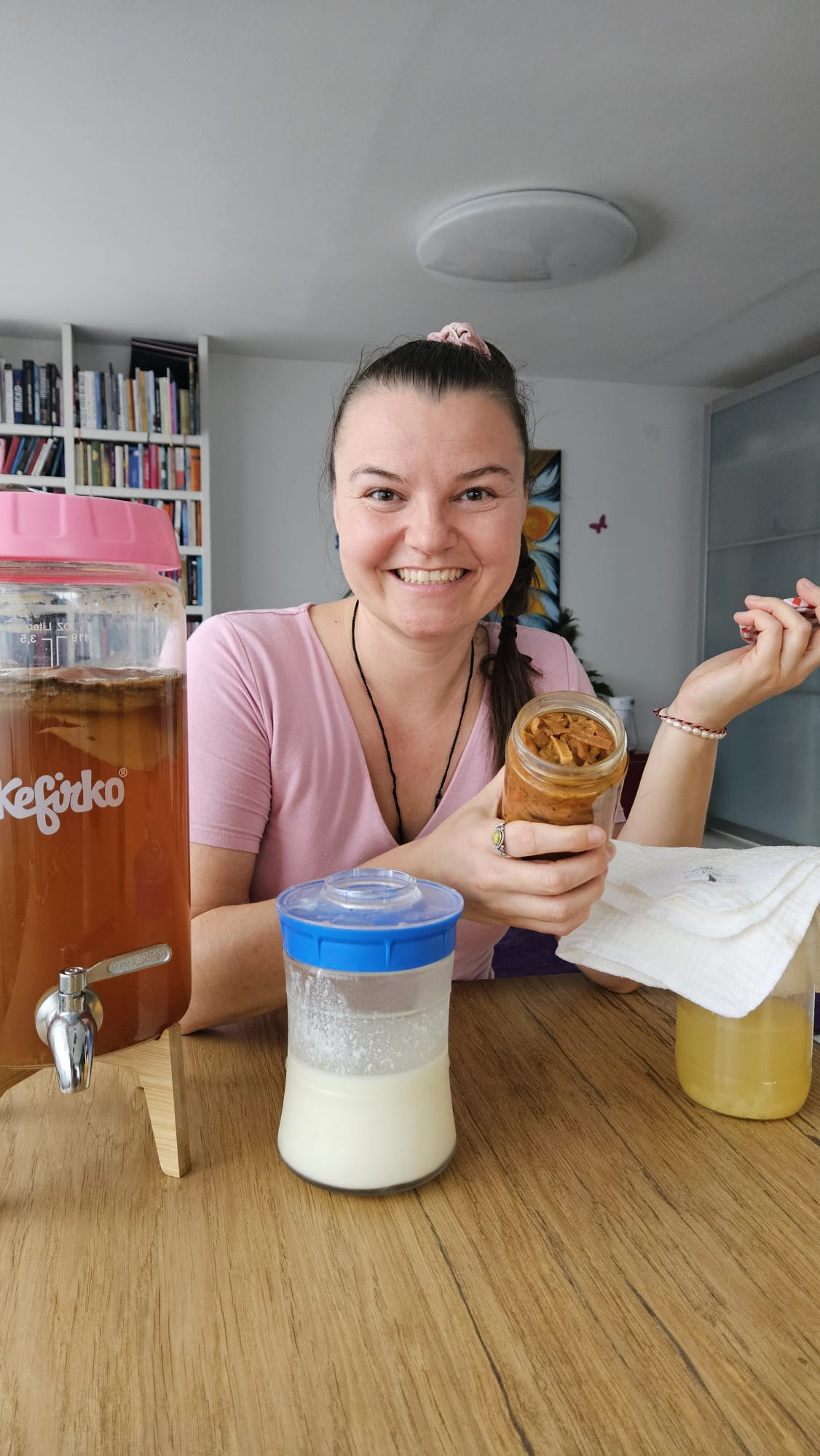 Z drožmi pečem že trinajst let, fermentiram pa štirinajst. Tako da lahko ugibaš, katera kultura je bila prva v moji kuhinji, zaupam ti v torek. Iz preprostega poskusa v domači kuhinji se je rodila čista ljubezen, ki me je popeljala po svetu — skozi knjige, delavnice in srečanja z ljudmi, ki jih združuje ljubezen do žive hrane.