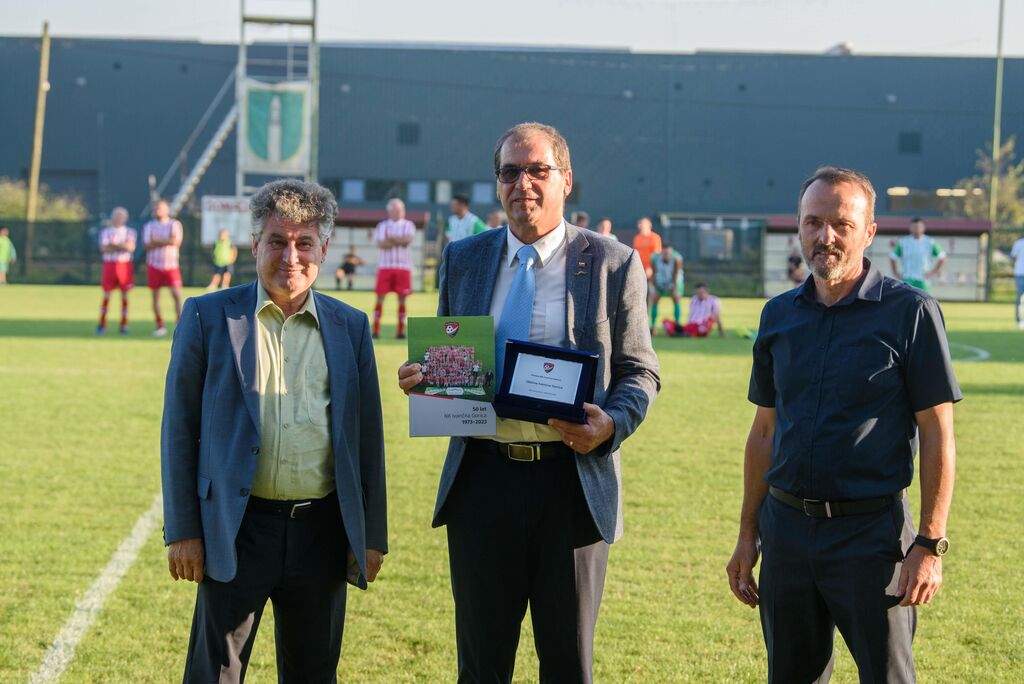 Nogometnemu klubu Ivančna Gorica je na petkovi slovesnosti čestital župan Dušan Strnad in se z jubilejnim priznanjem zahvalil vsem, ki so v vseh teh letih klub vodili in ga pripeljali do častitljivega jubileja. Župan je povedal, da je bil v vseh teh letih, tudi s pomočjo lokalne skupnosti, zgrajen sodoben stadion, poleg njega pa pomožno igrišče z umetno travo, kar danes omogoča primerne pogoje za vadbo z mladimi in igranje nogometa na kar se da sodobni ravni.