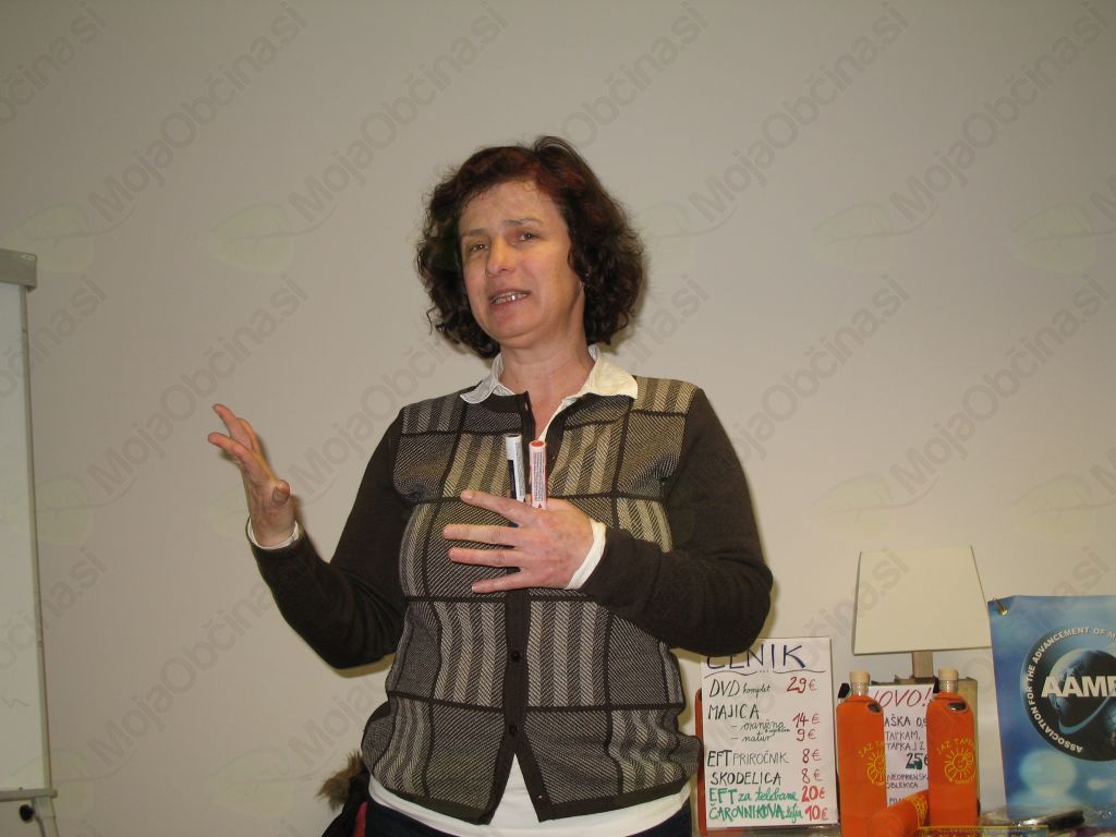 Predstavitev EFT tehnike za odpravljanje čustvenih težav je v torek, 9. aprila privabila v knjižnico v Ivančni Gorici skoraj tri desetine ljudi vseh starosti, med ženskami le enega moškega. Pika Rajnar, predavateljica s certifikatom za poučevanje omenjene tehnike je s slikovitimi primeri in energičnim nastopom pritegnila v trepljanje določenih akupunkturnih točk vse prisotne.