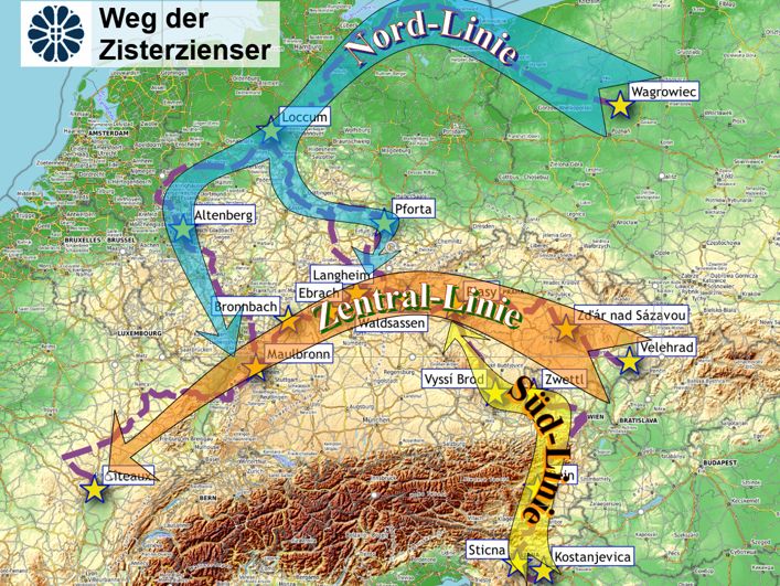 V Muzeju krščanstva na Slovenskem že več let sodelujemo v mednarodnem projektu Cisterscapes - Cistercian Landscapes connecting Europe, v okviru katerega smo na zemljevid pohodniških poti uvrstili novo pot ''Pot Cistercijanov'. Naši partnerji so v preteklih dneh slavnostno odprli prvi del nove mednarodne poti. Ta pešca ali kolesarja popelje od Ebracha do Langheima, skozi pokrajino, kjer so še vedno vidni sledovi gospodarjenja cistercijanskih menihov.