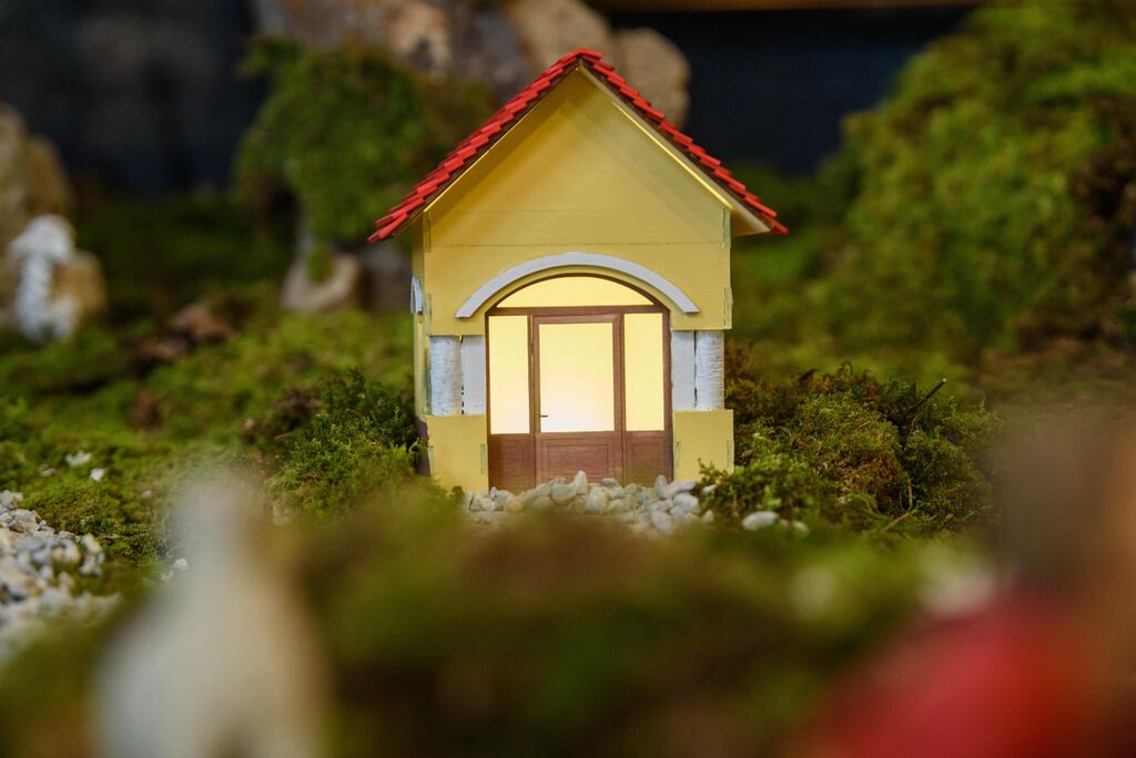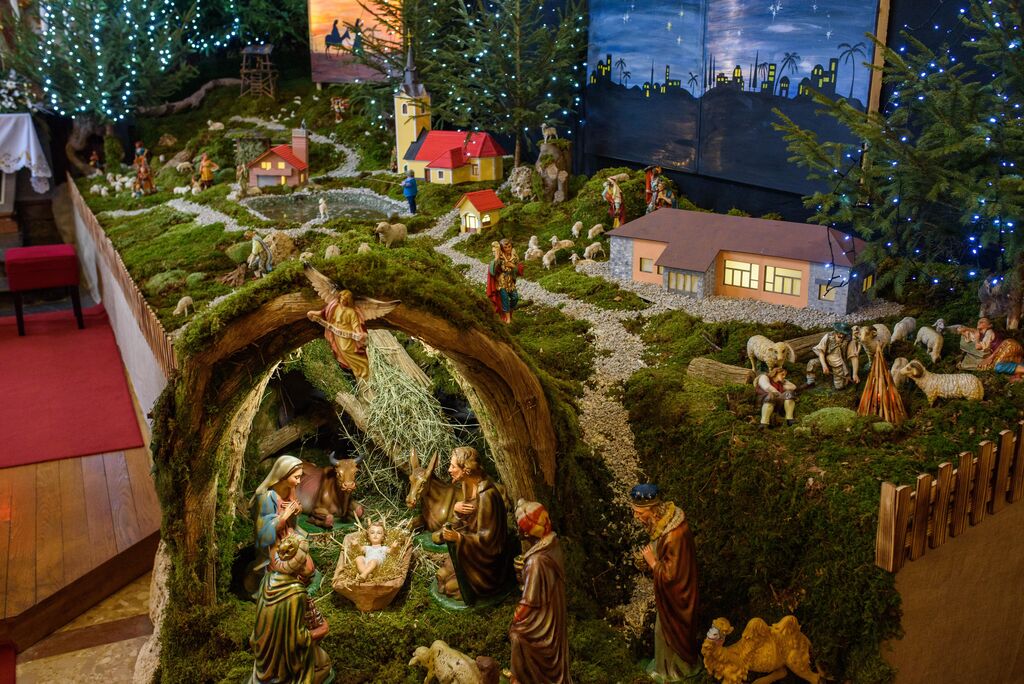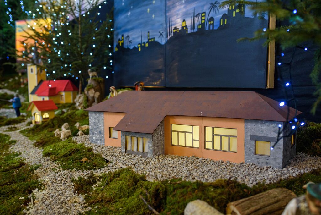 Posebnost letošnjih jaslic v Šentvidu je, da je v njih predstavljena vas Hrastov Dol z vaško lužo, gasilskim domom, vaško kapelico in nekdanjo staro šolo.
