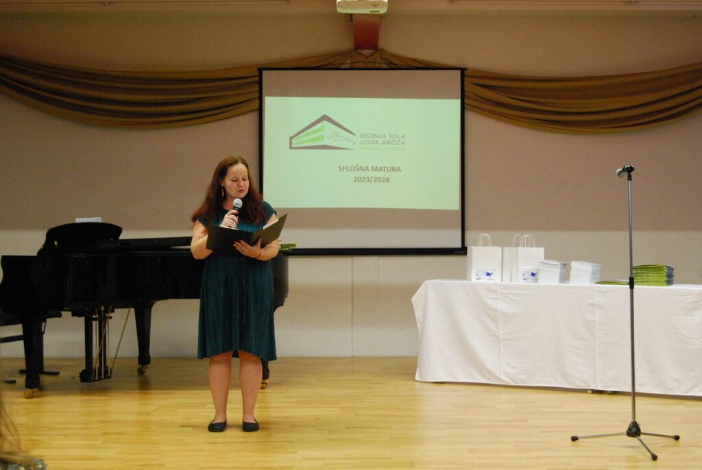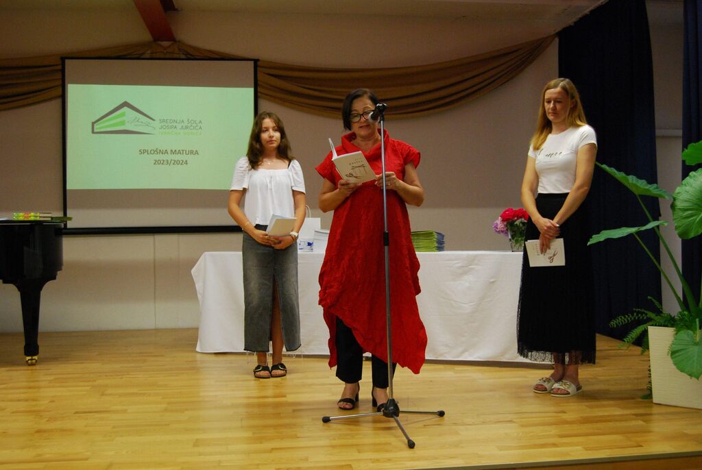 V četrtek, 11. julija 2024, je v šolski avli potekala slovesna podelitev letošnjih maturitetnih spričeval. Tudi tokrat so dosegli izjemen uspeh in maturo opravili z 98,08 % uspehom. Med letošnjimi 52 maturanti sta tudi zlata maturantka Ines Glavan in neprekosljiva diamantna maturantka Zoja Peteh, ki je dosegla vseh 34 točk. Povprečno število doseženih točk je bilo 20,8 – kar presega tudi državno povprečje.