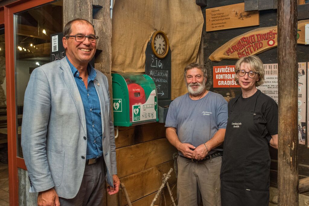 Upravljalca Lavričeve koče Maks in Sonja sta se županu zahvalila za pridobitev v upanju, da bo AED ostal zgolj preventivni pripomoček in nikoli ne bo potreben za reševanje življenj.