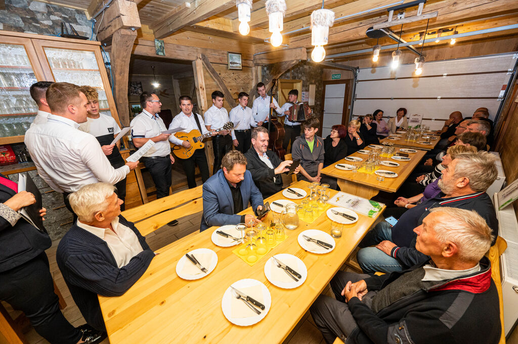 Večer so s pesmijo in glasbo obogatili pevci Moškega pevskega zbora Zagradec, pod vodstvom Roberta Kohka in dokazali kako neločljivo se prepletata kultura in turizem.