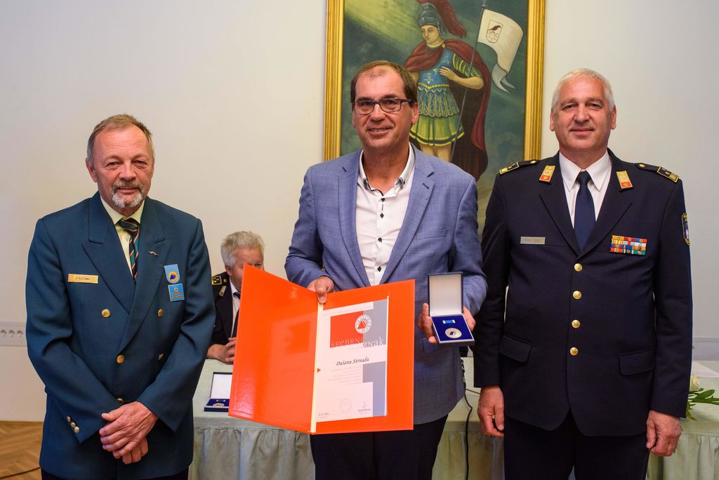 Srebrni znak CZ se podeljuje posameznikom, skupinam in organizacijam za posebne zasluge in izjemen prispevek pri razvijanju in krepitvi varnosti pred naravnimi in drugimi nesrečami, izjemne dosežke pri zaščiti in reševanju ljudi, živali, premoženja, kulturne dediščine ter varovanju okolja ob naravnih in drugih nesrečah ter za izume in inovacije, s katerimi je bil dosežen pomemben napredek pri razvijanju in krepitvi pripravljenosti za zaščito, reševanje in pomoč. Priznanje iz rok poveljnik Petka in poveljnika CZ Kozinca je prejel župan Dušan Strnad.