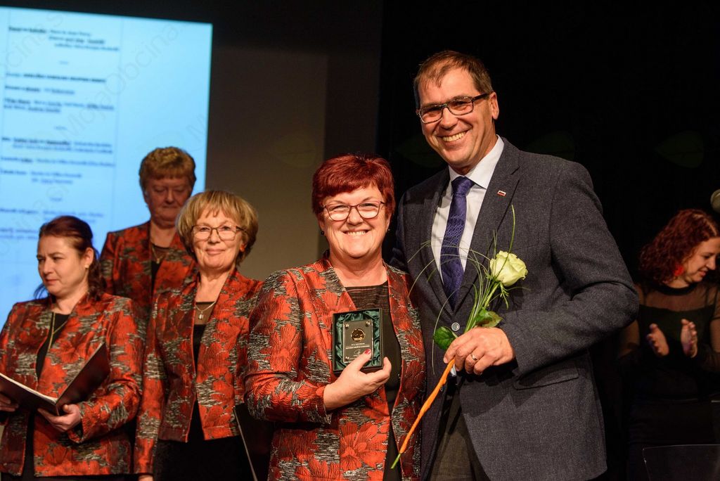 Kljub natrpanemu urniku in volilnemu dnevu se je povabilu odzval tudi župan Dušan Strnad, ki je predsednici KD Harmonija, Darinki Petek, izročil spominski kovanec Prijetno domače za 10-letnico delovanja kulturnega društva. Župan je v svojem nagovoru dejal, da je ŽePZ Harmonija eden redkih pevskih zborov v samem kraju Ivančna Gorica in da želi, da bi s tradicijo prepevanja gospe še nadaljevale. Na koncu pa jim je še zaželel, da bi 15-letnico praznovale v novem Kulturno upravnem centru Ivančna Gorica.