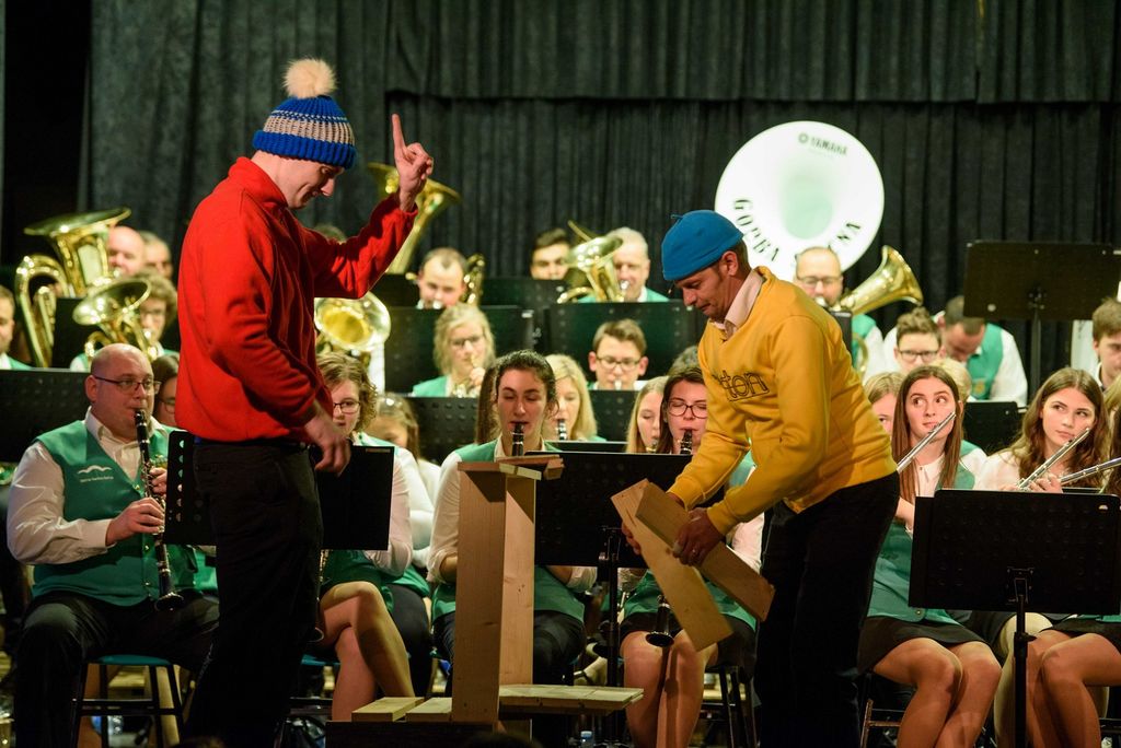 Koncertu, ki ga je povezovala Ana Jerina, sta se na koncu pridružila še vsem poznana mojstra Pat in Mat iz animirane serije »A je to«, ki sta ob zvokih godbe na hudomušen način, a žal neuspešen, sestavljala leseno skulpturo.